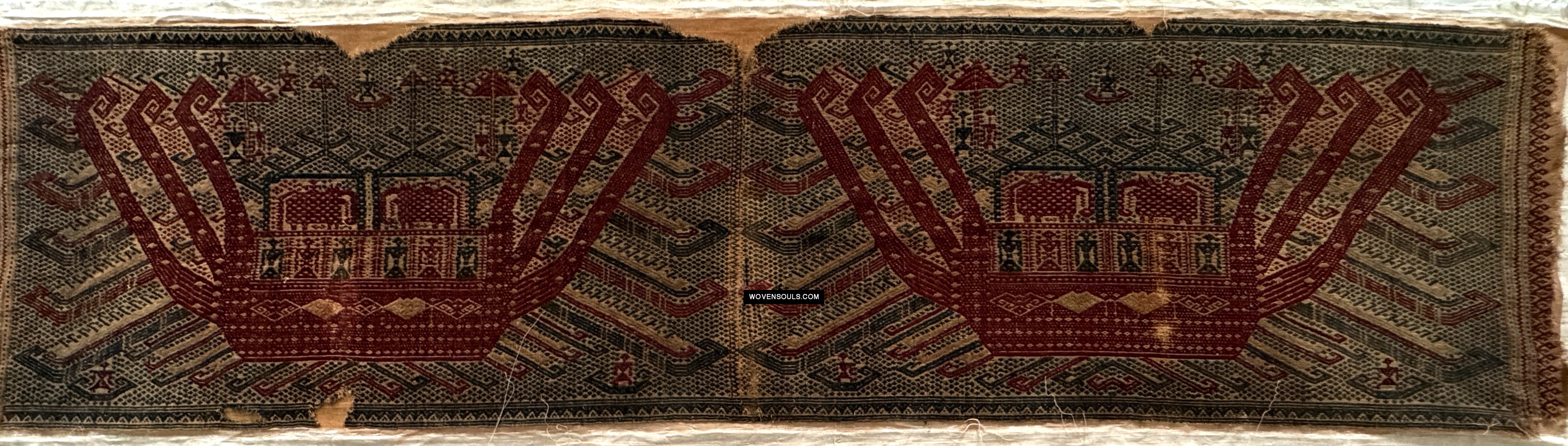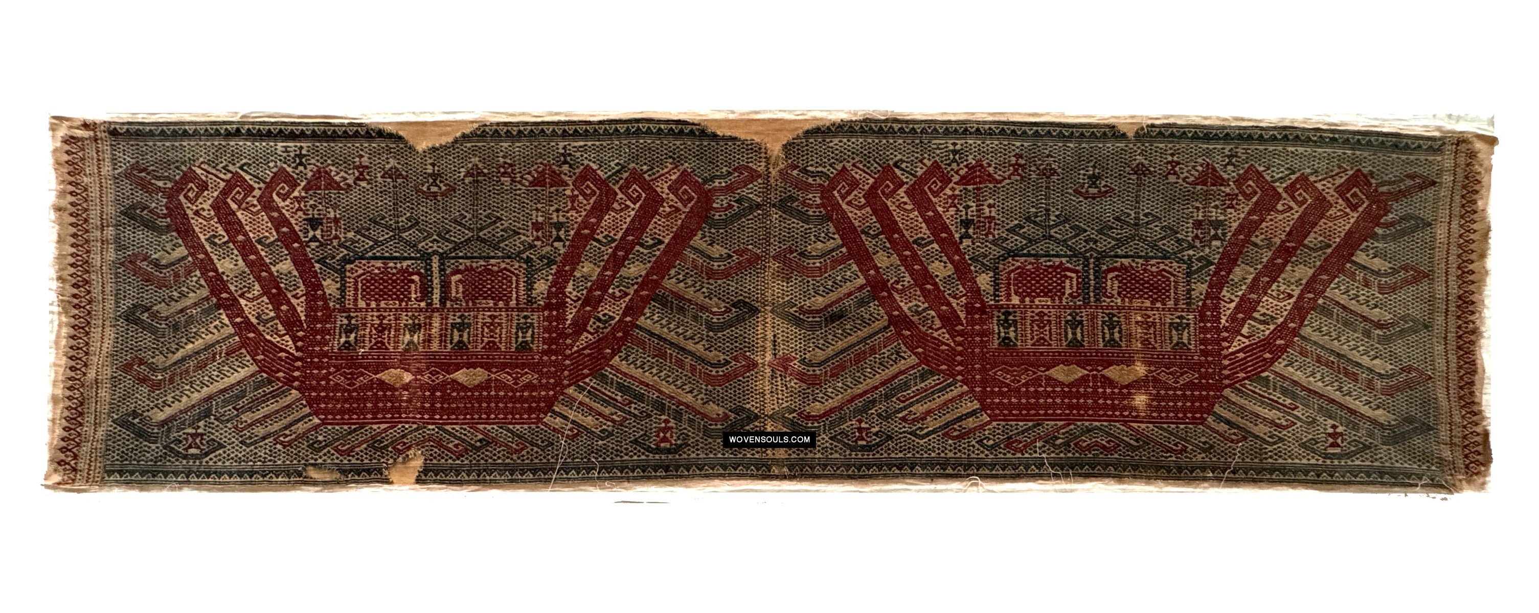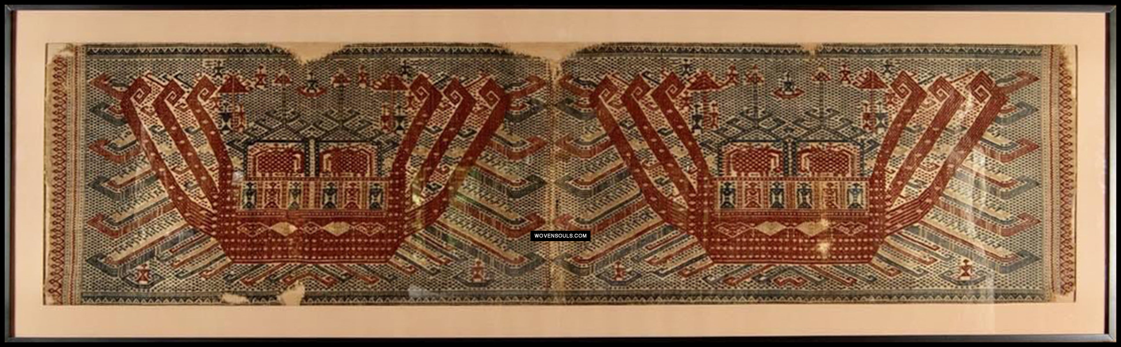 1957 Rare Museum Quality Antique Palepai Sumatra Textile avec une double conception de navires