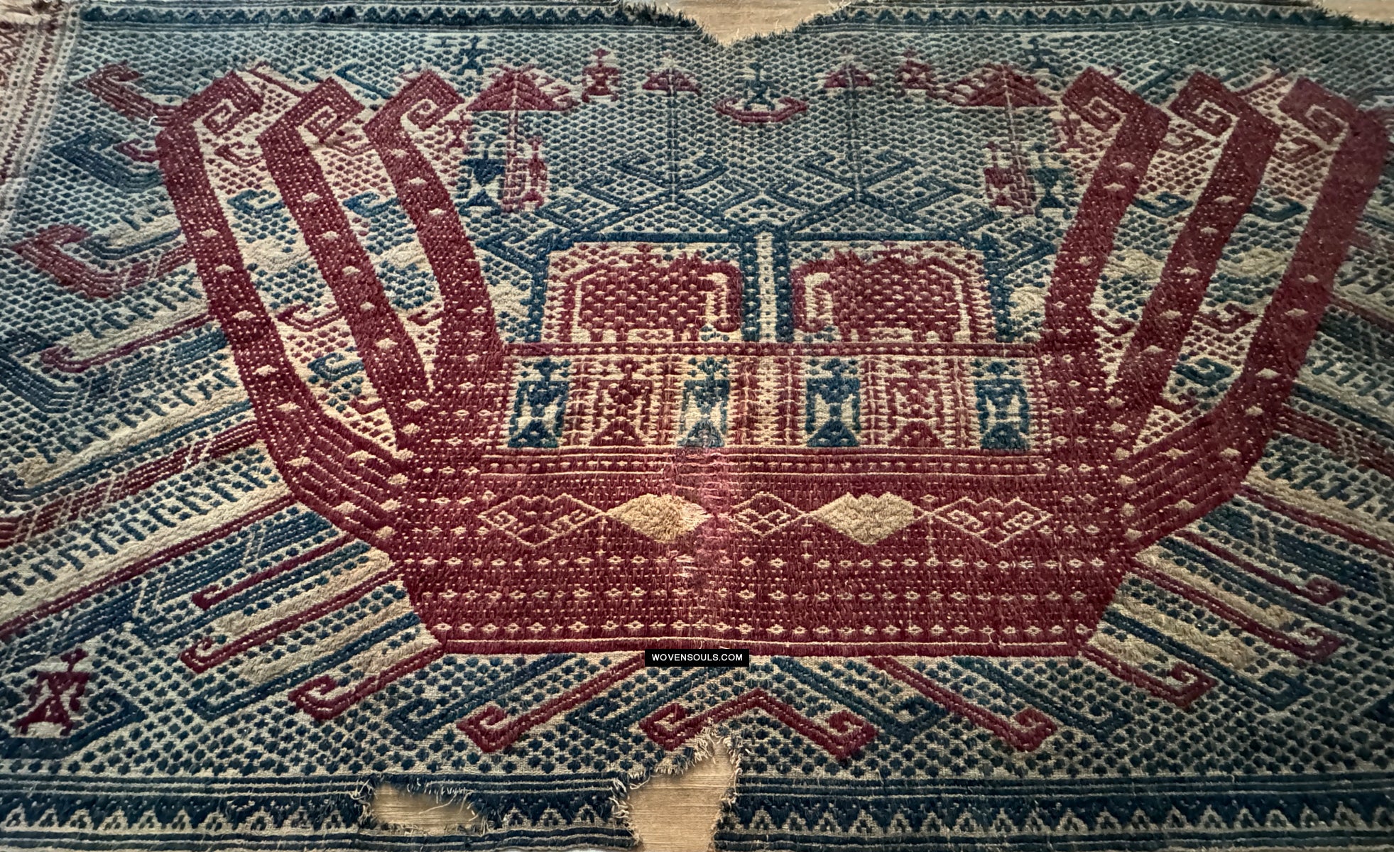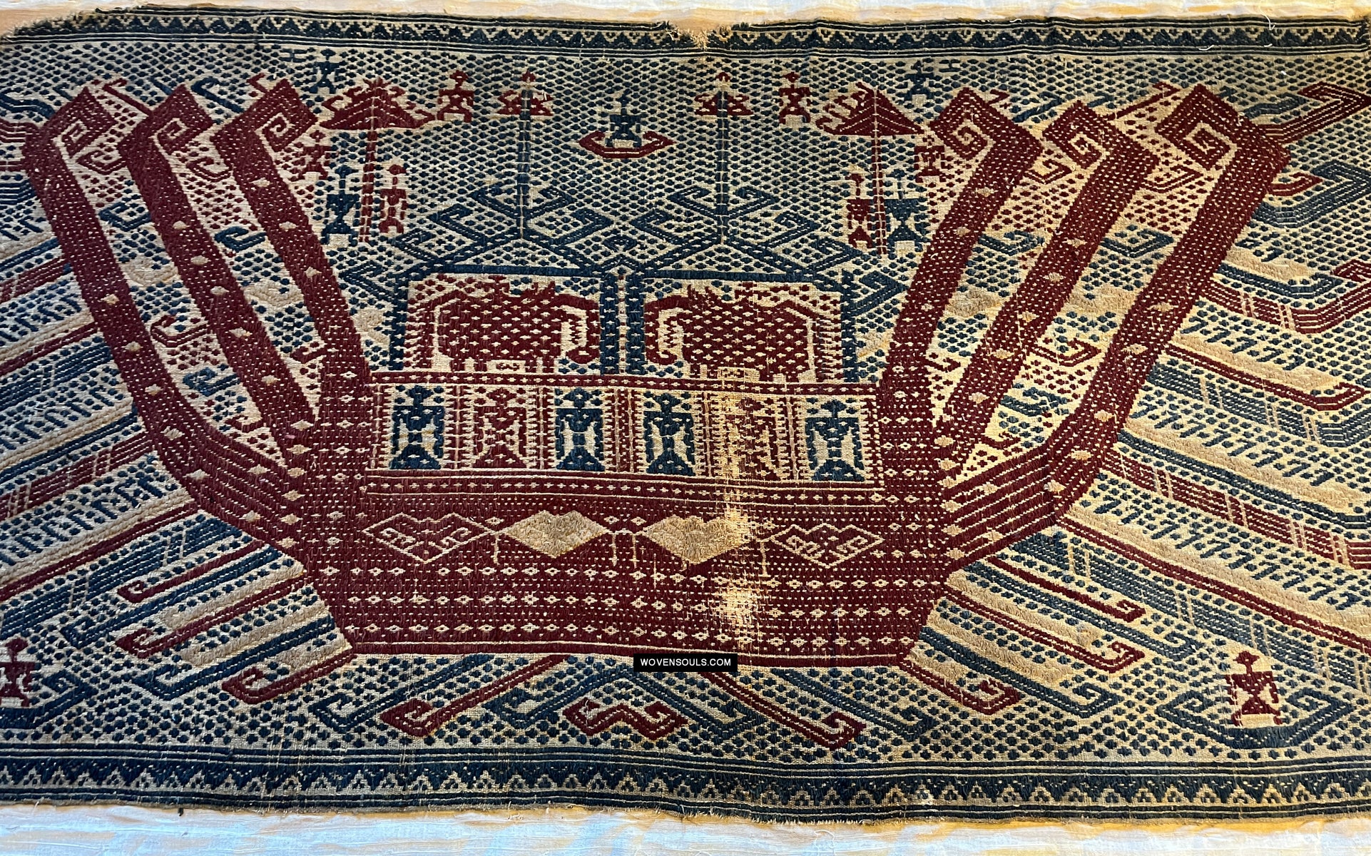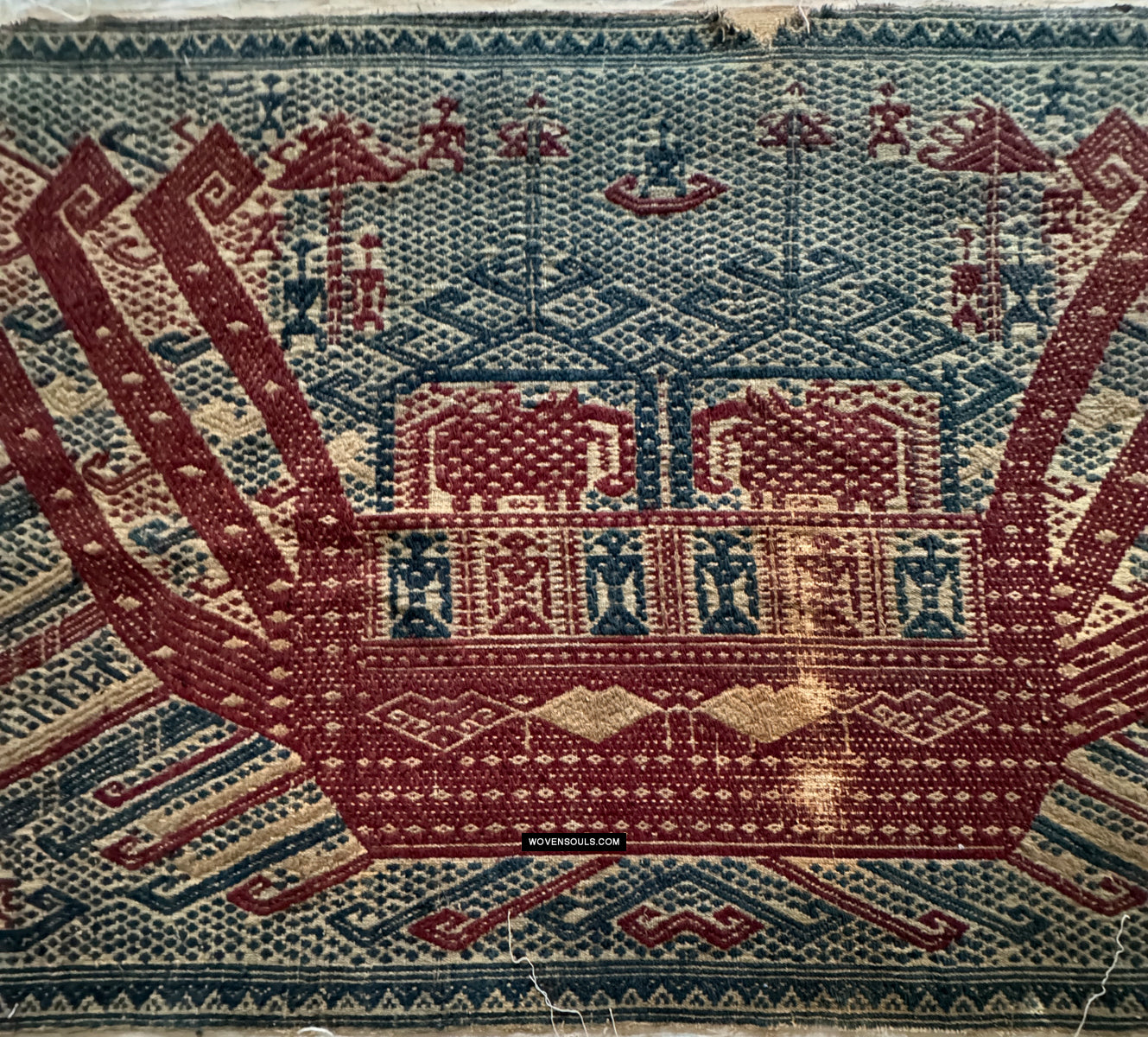 1957 Rare Museum Quality Antique Palepai Sumatra Textile avec une double conception de navires