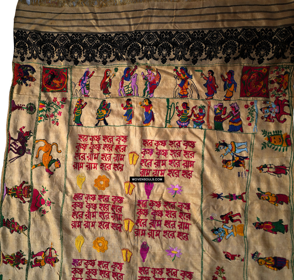 850 rares Namawali Vrindavani Assam Vastra - Silk avec broderie double face