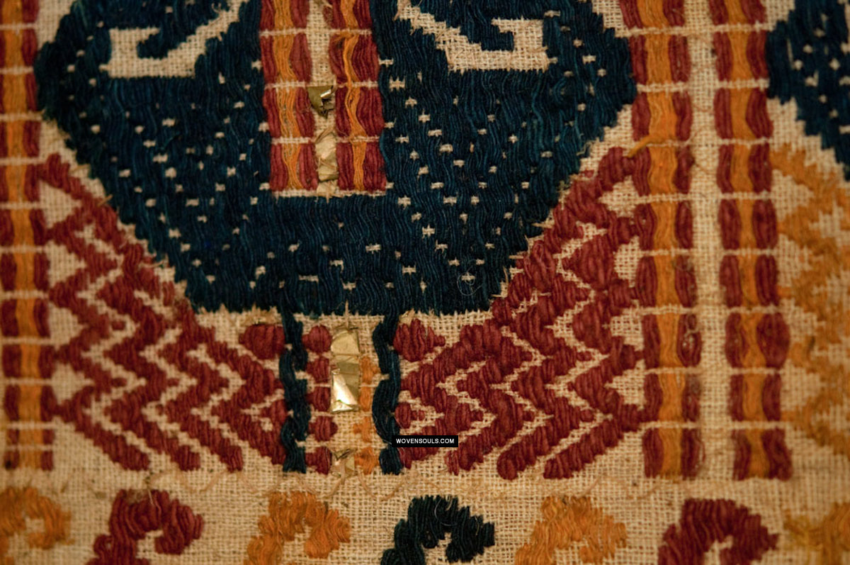 Des fragments de métal qui ont été tissés à l'origine dans ce textile mais qui sont enlevés plus tard (peut-être dans l'espoir d'une teneur en métal précieux) restent ancrés dans le textile.