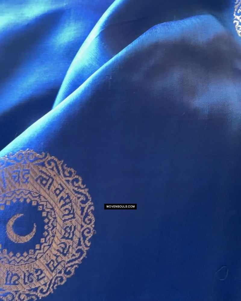 1988 Spectacular Silk Sari avec Moon Shloka Inscriptions
