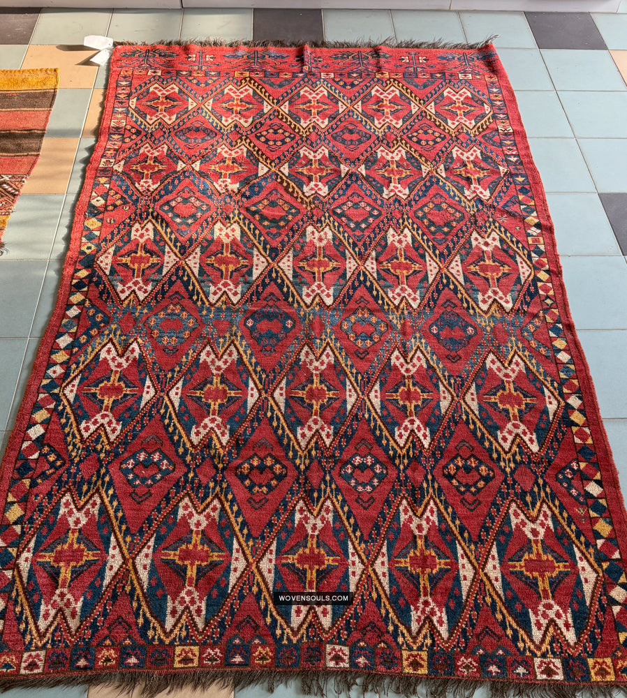 1990 Antique Ersari Turkmin tapis tapis w ikat Design / Human Figure