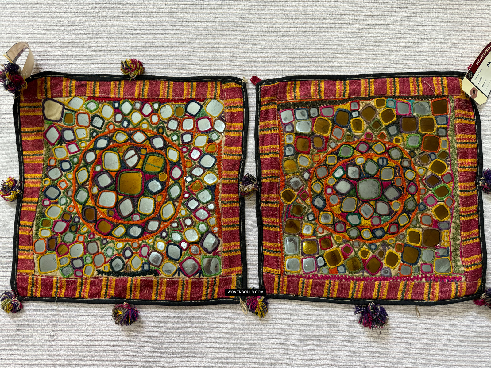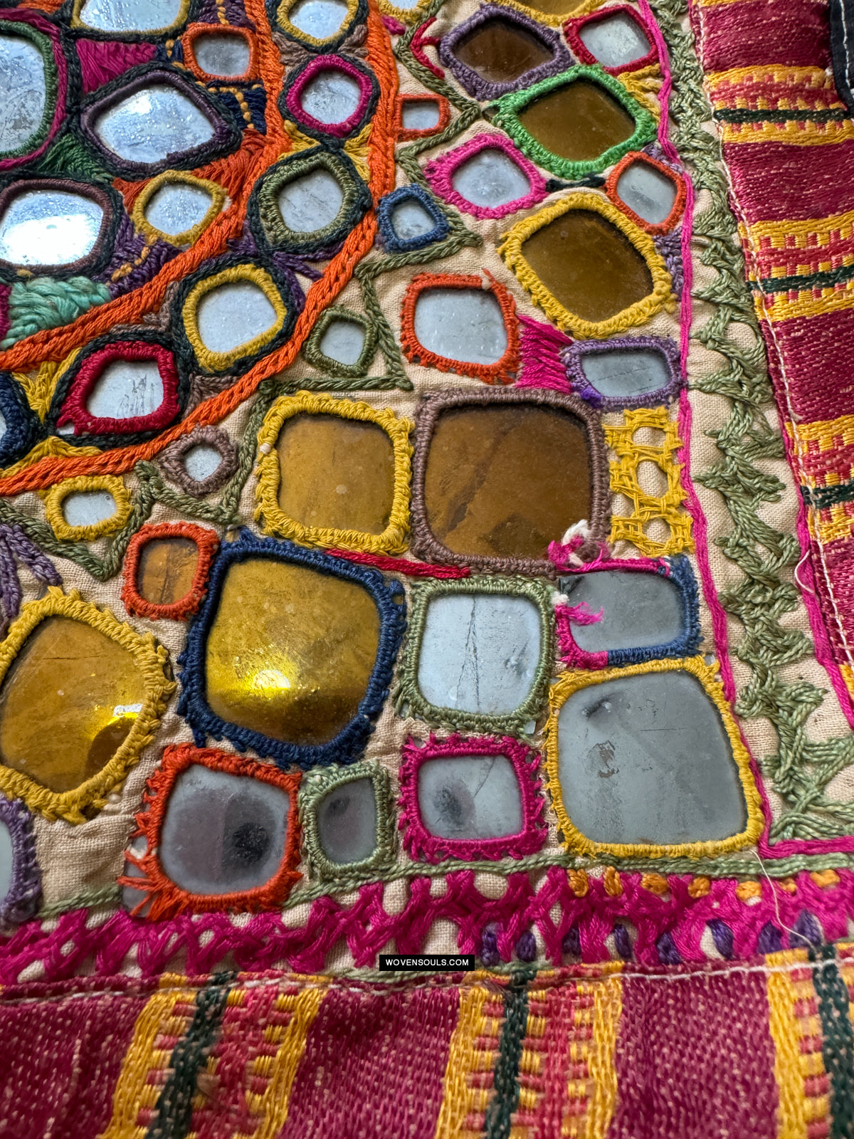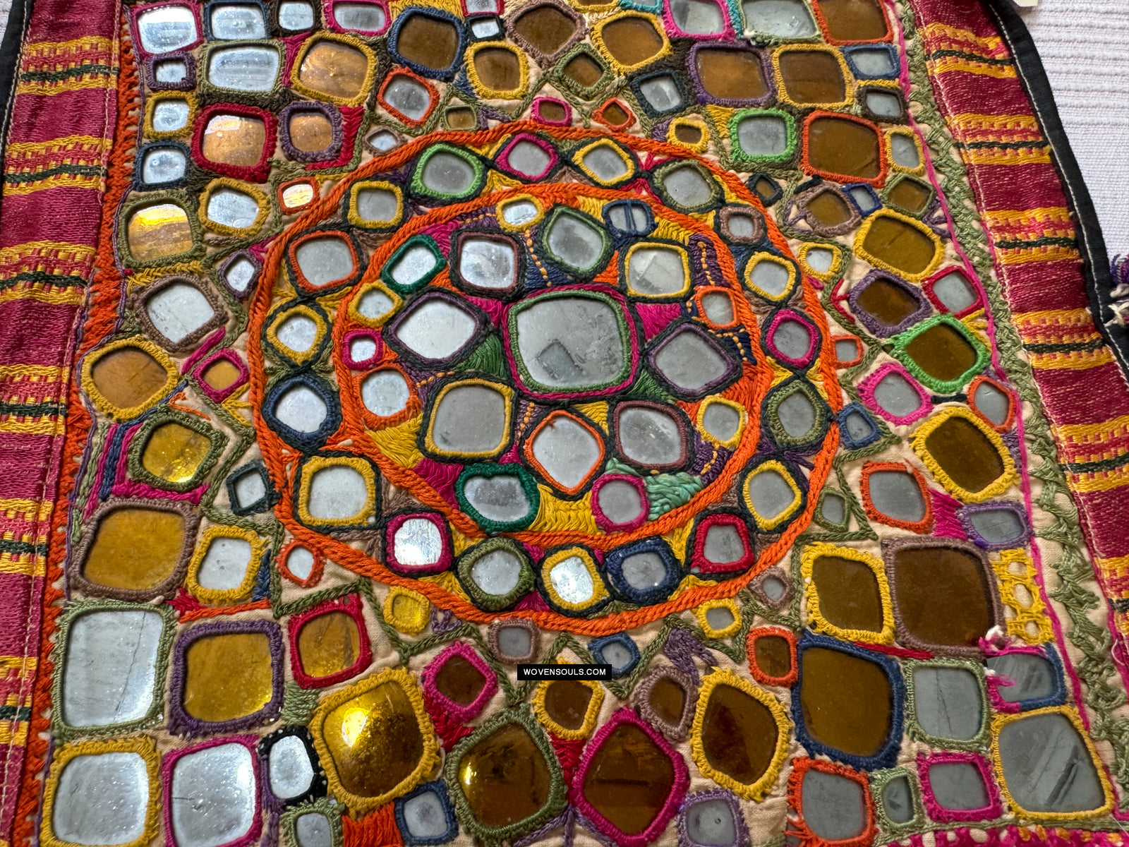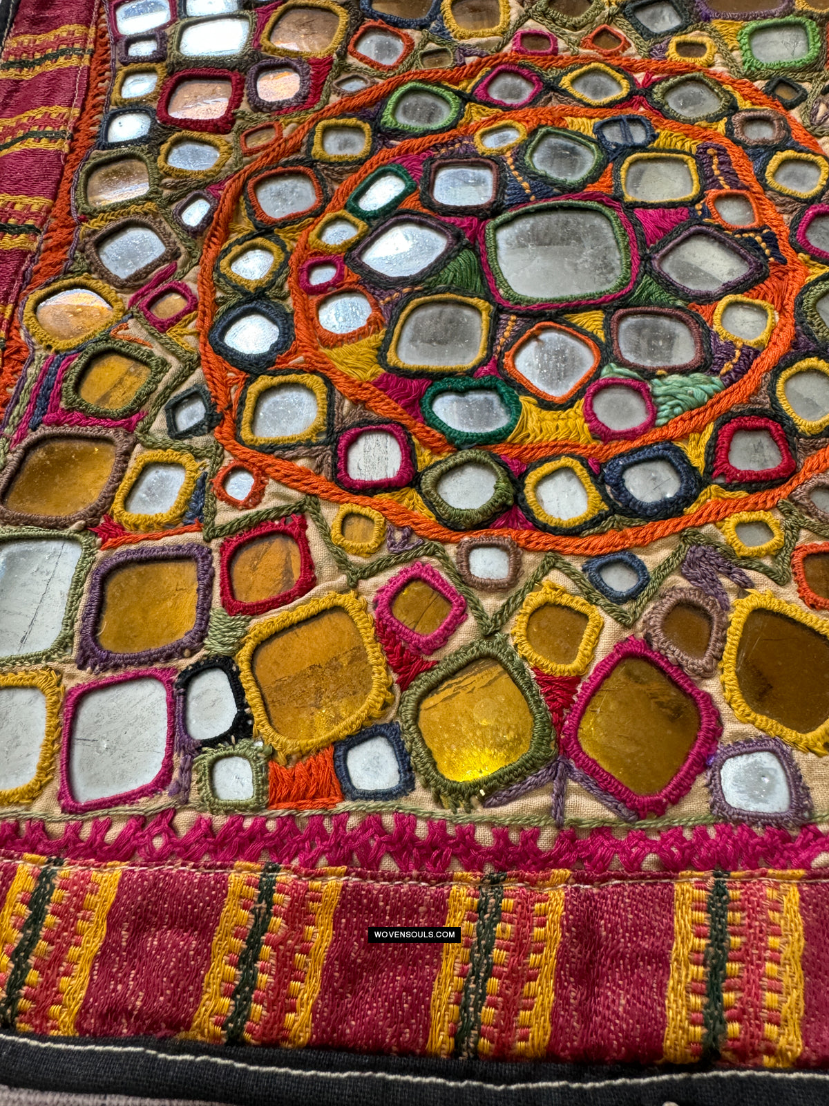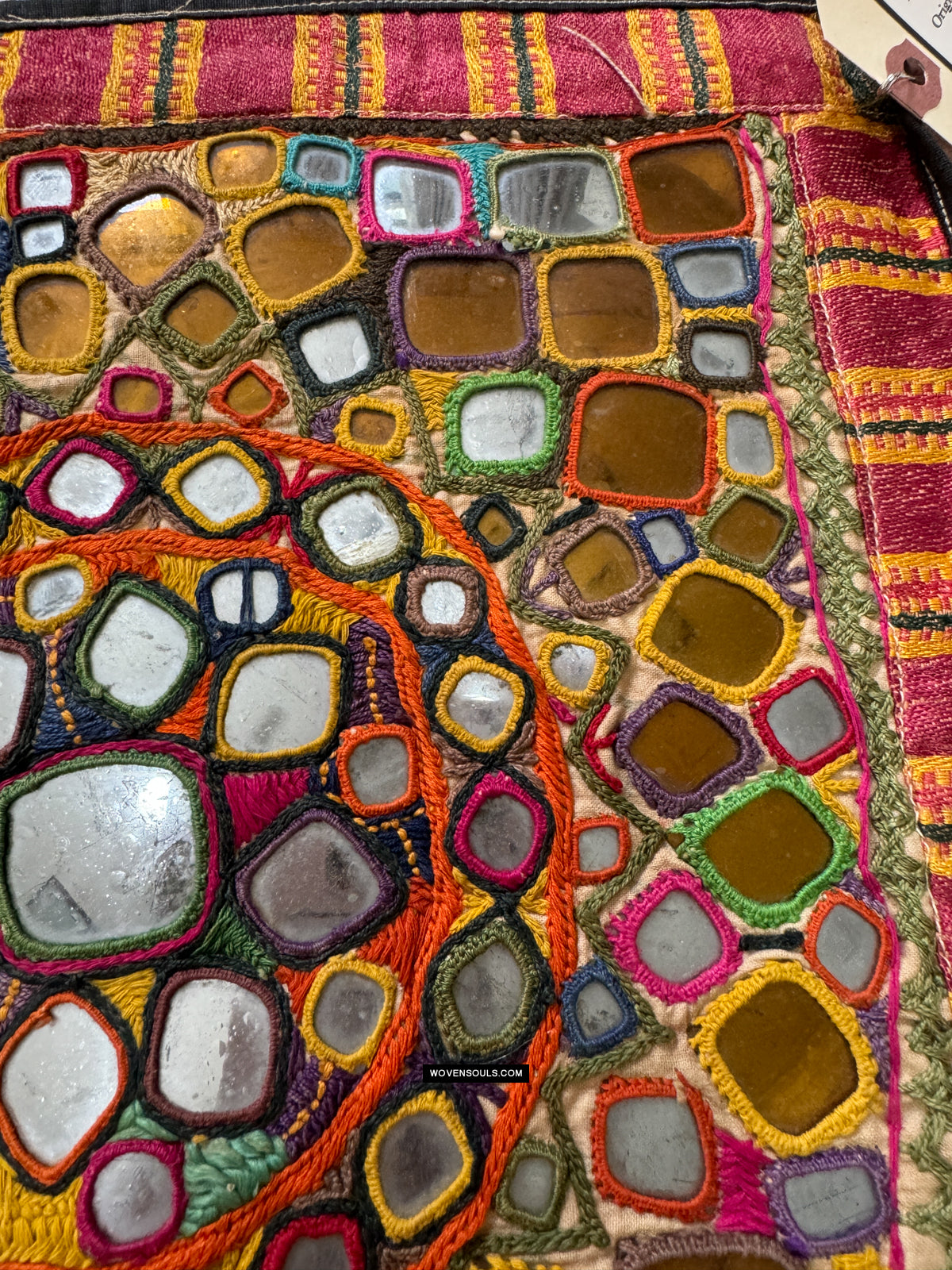 Specchi d'oro molto rari su un paio di chaaklas ricamato da Kutch, Gujarat