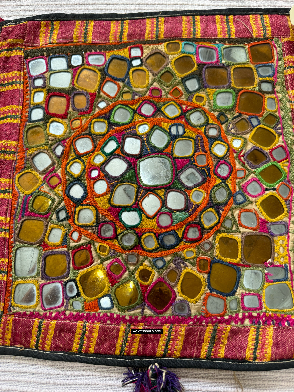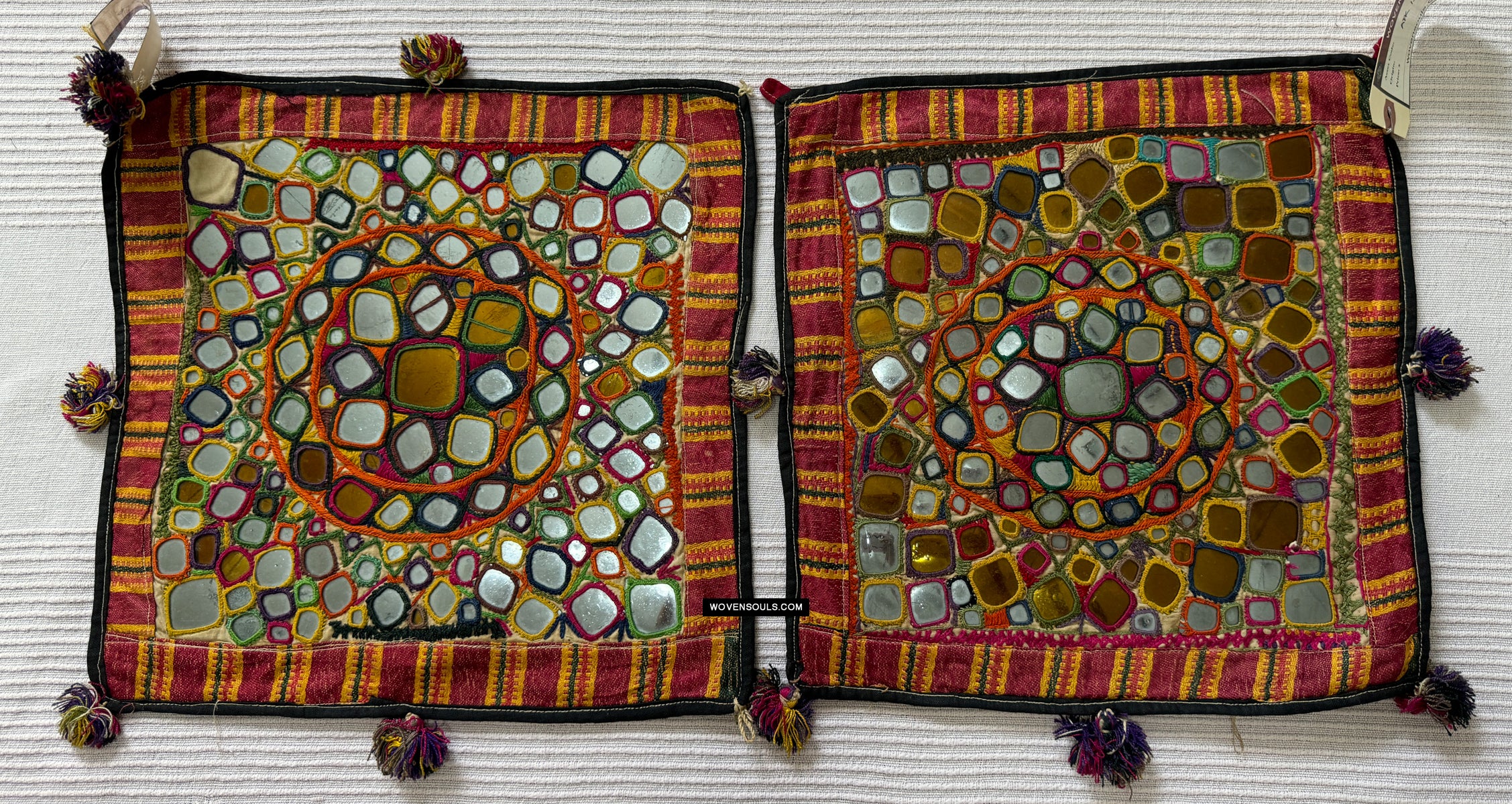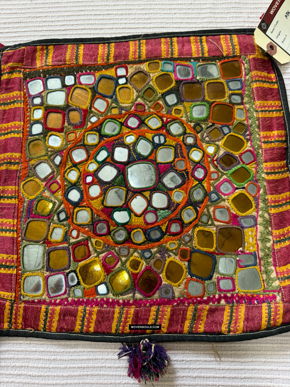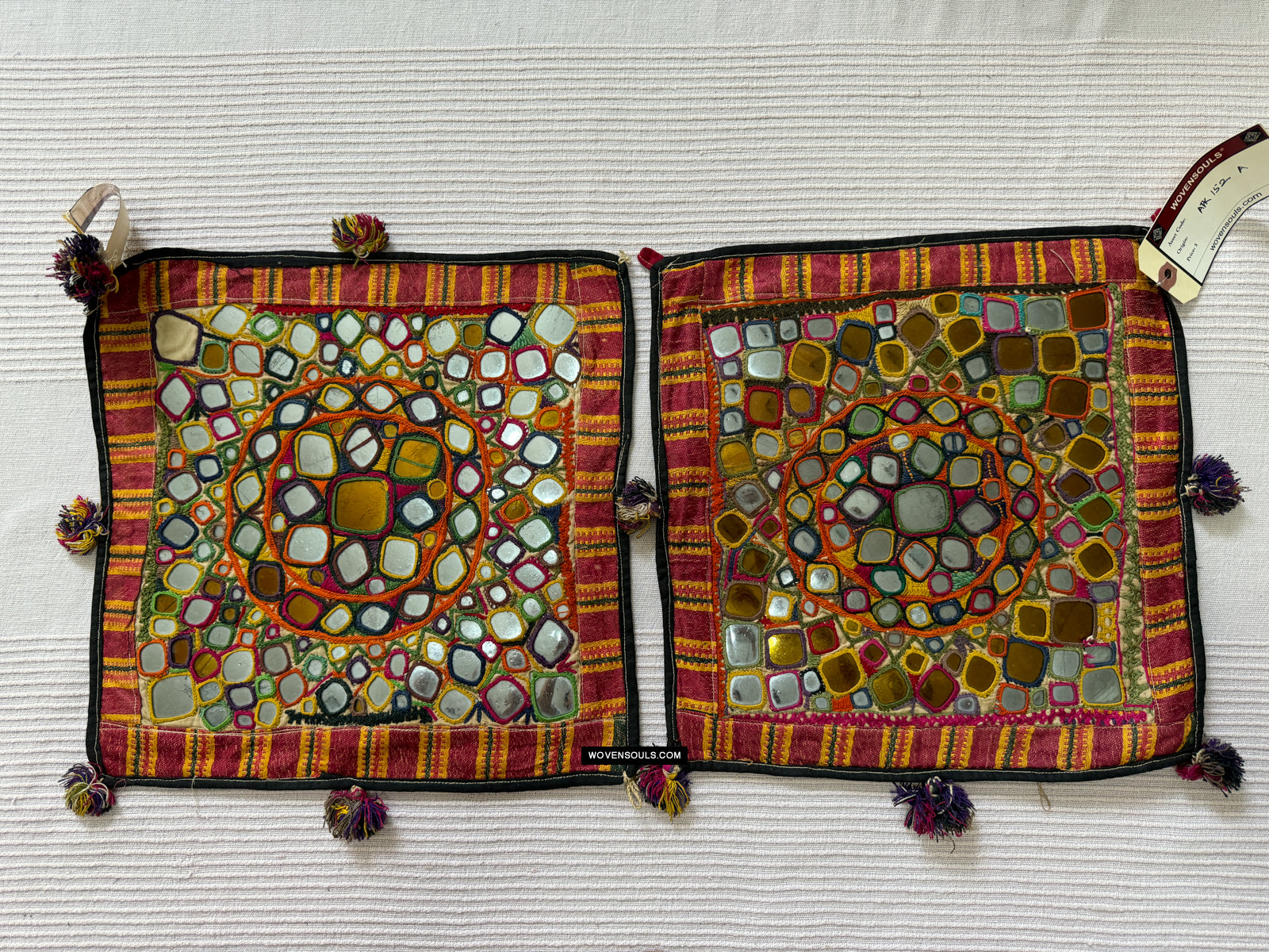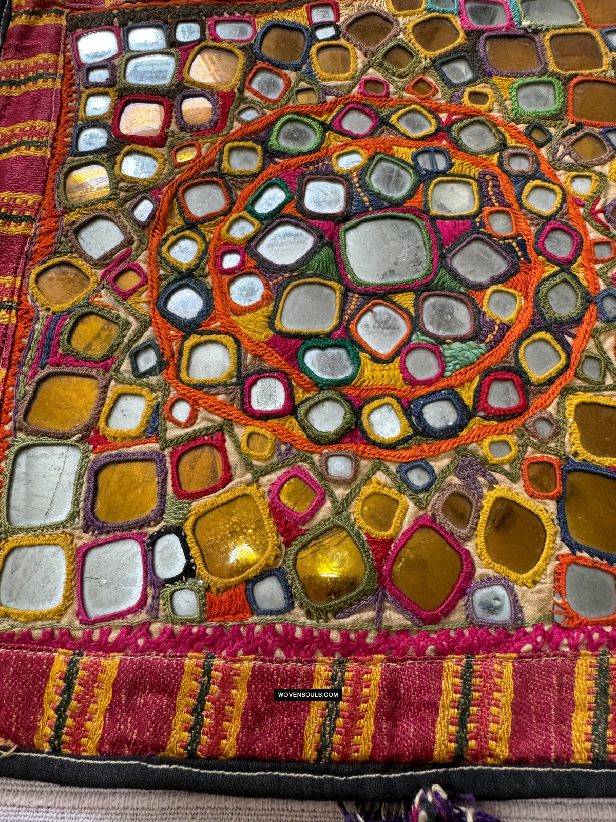 Specchi d'oro molto rari su un paio di chaaklas ricamato da Kutch, Gujarat