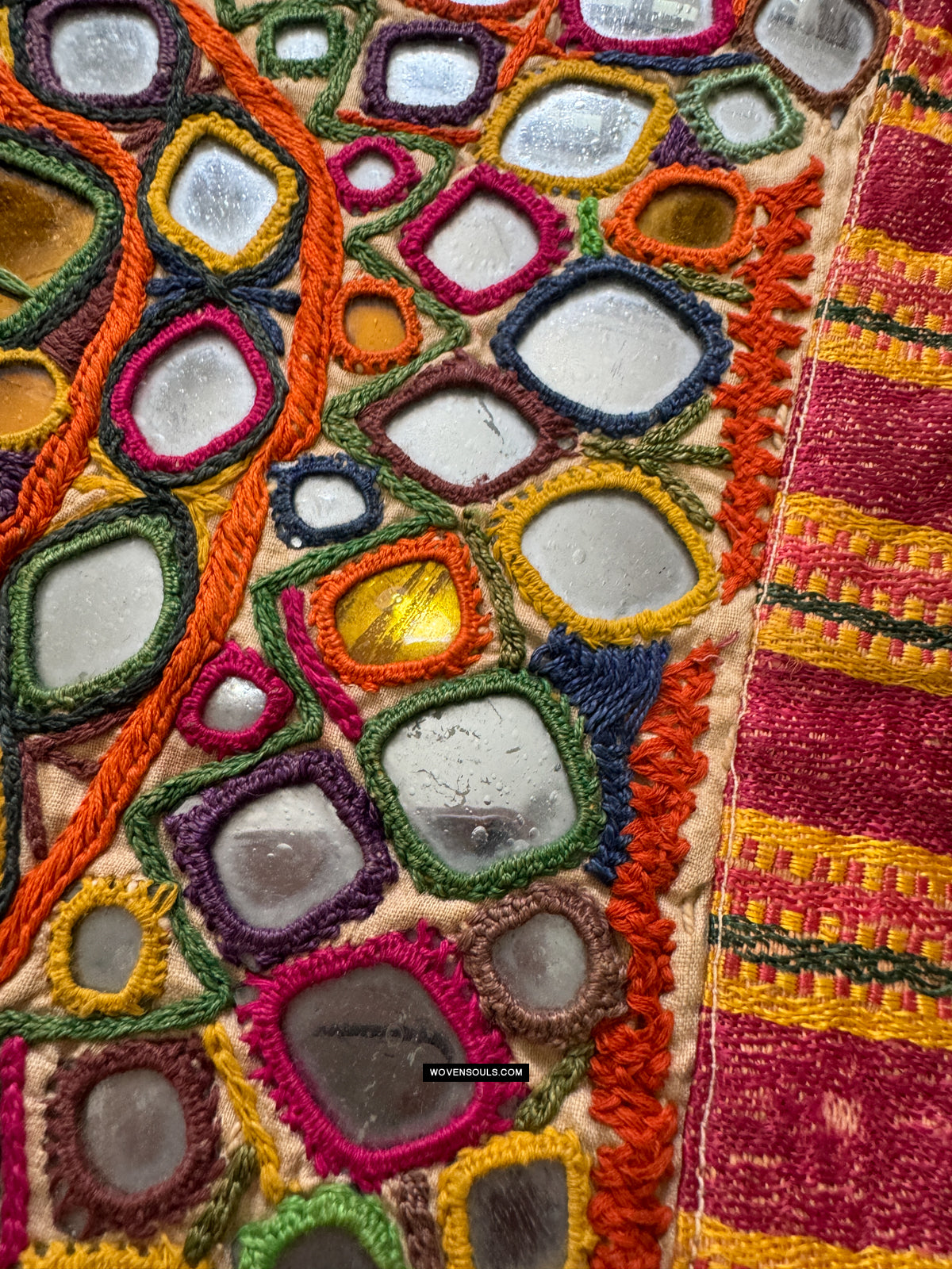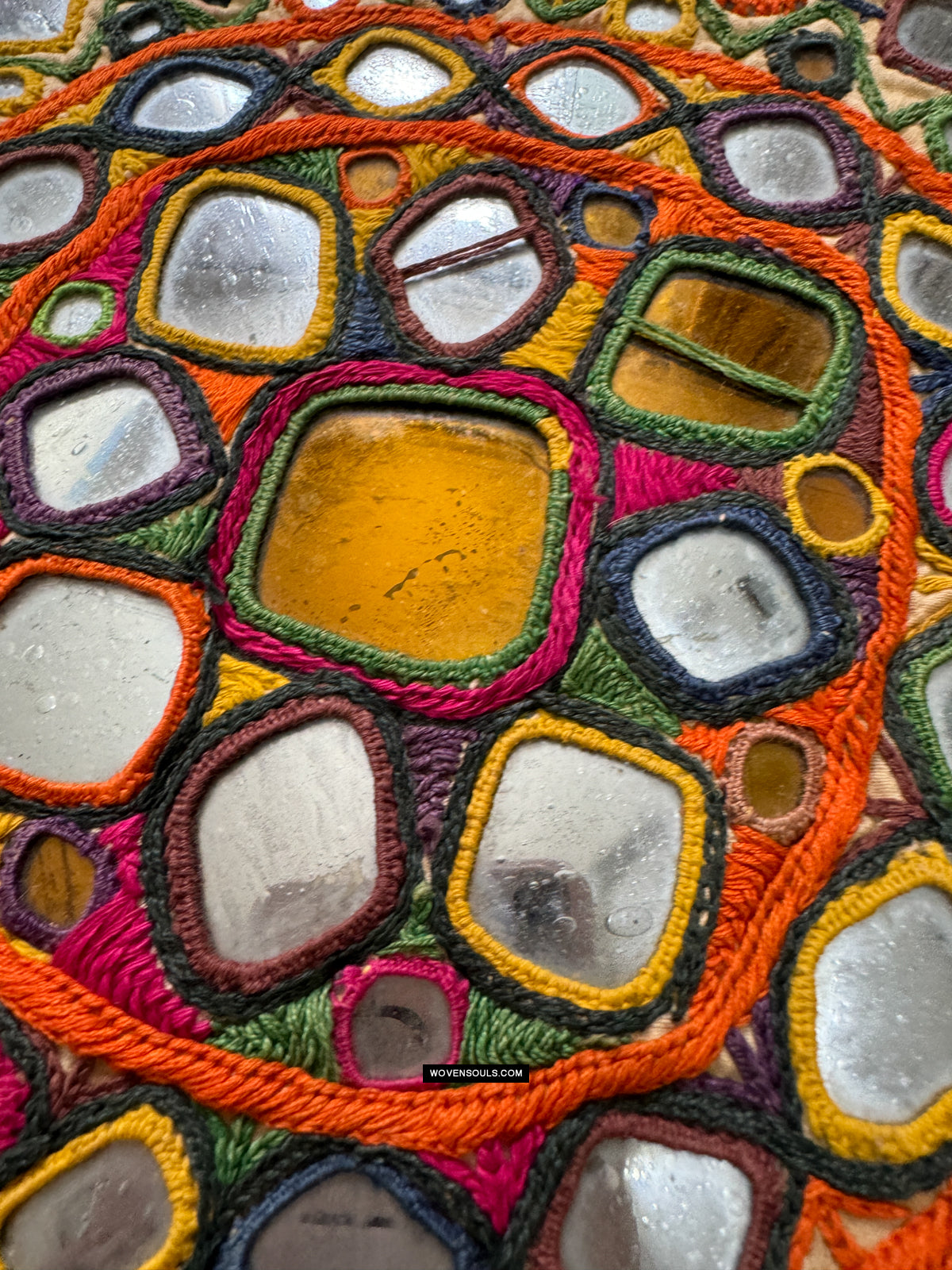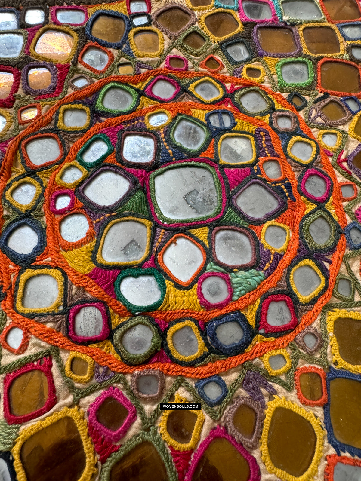 Pannelli a parete con rari specchi dorati con bordi masru dal Rabari Tribù di Kutch, India