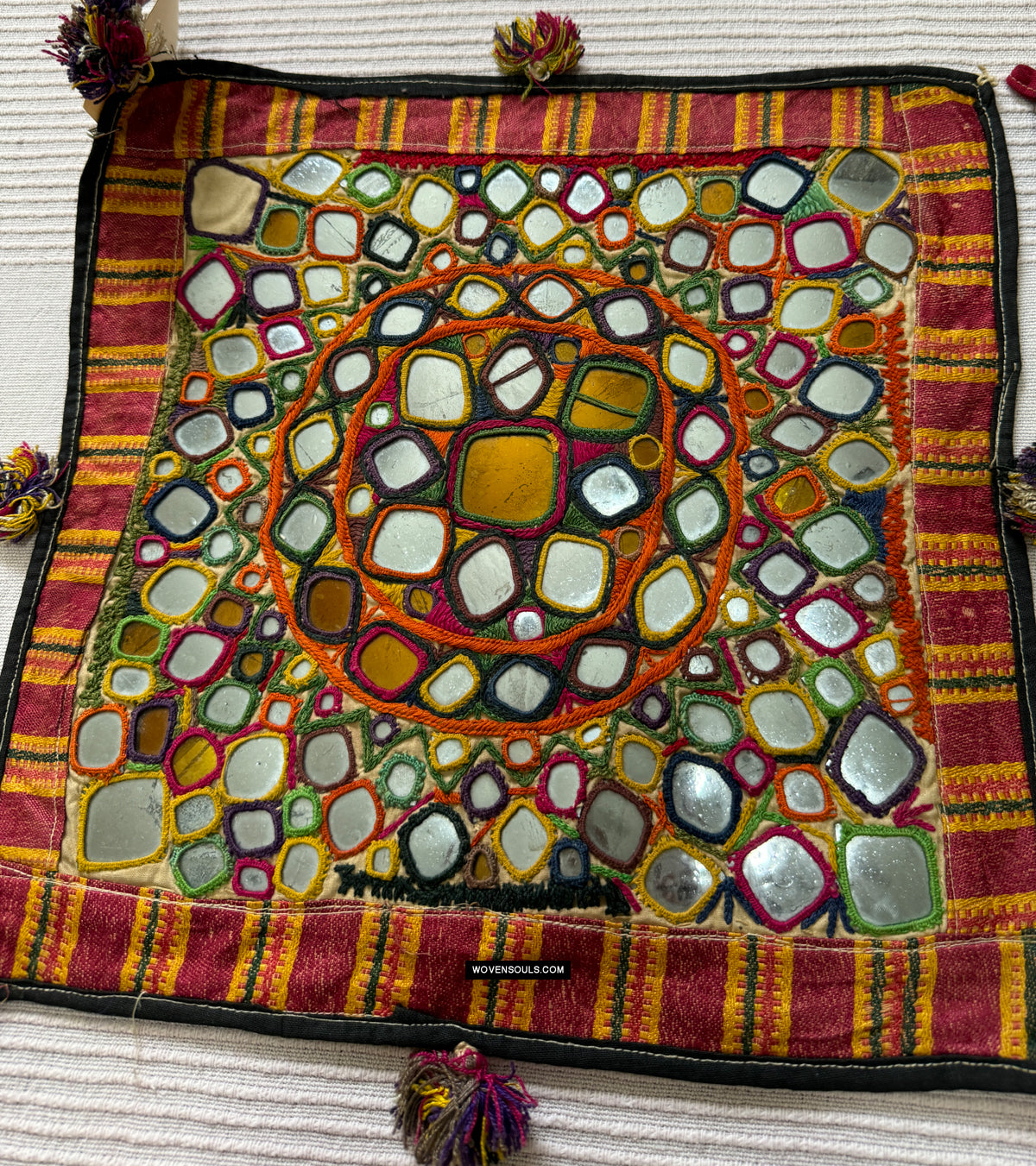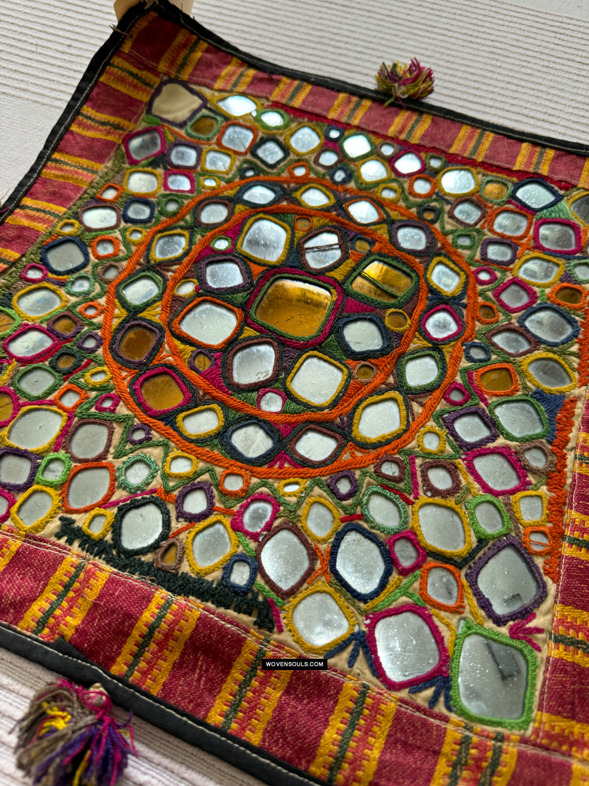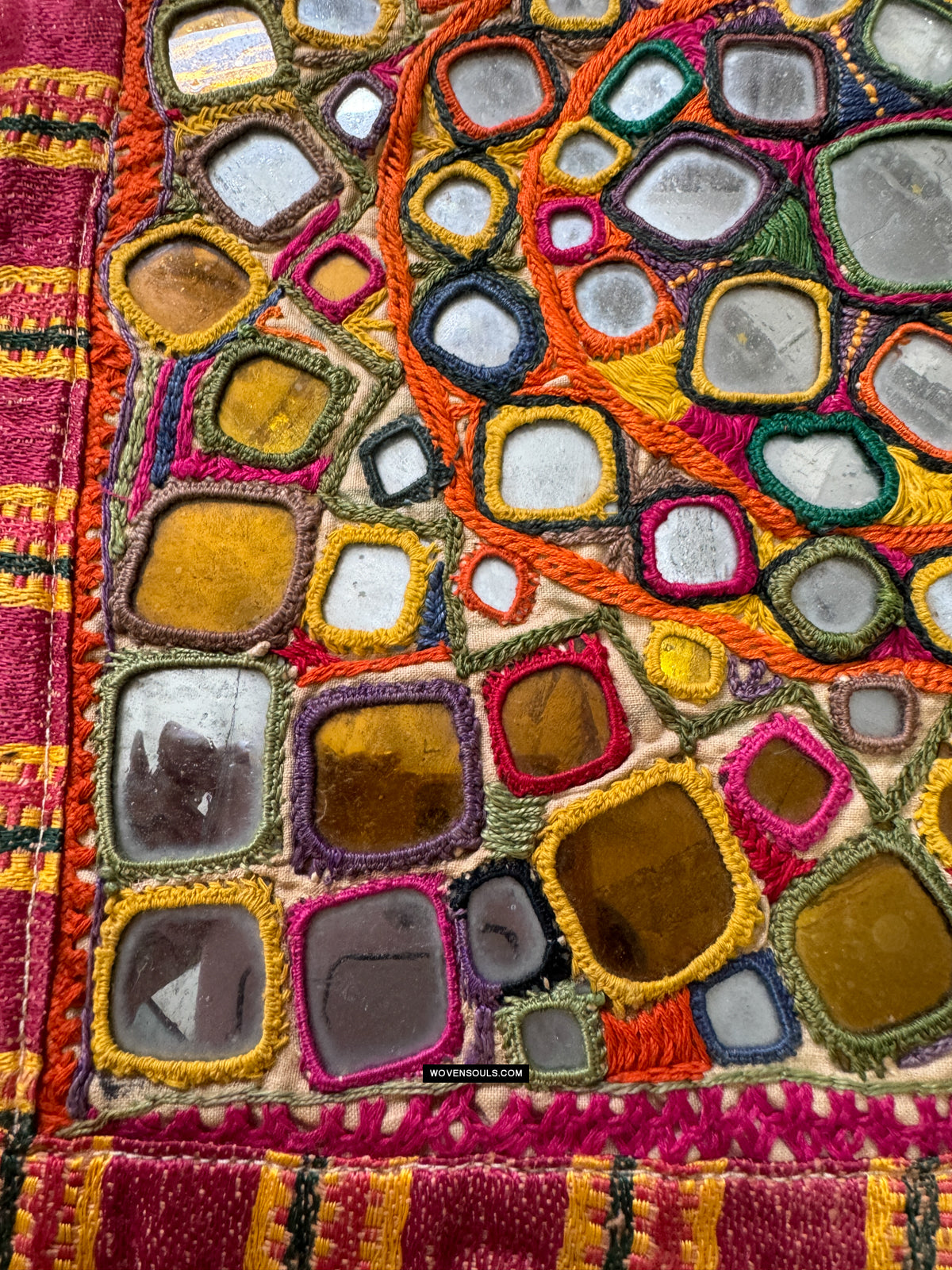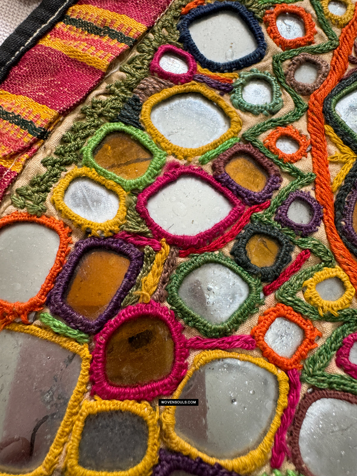 Pannelli a parete con rari specchi dorati con bordi masru dal Rabari Tribù di Kutch, India