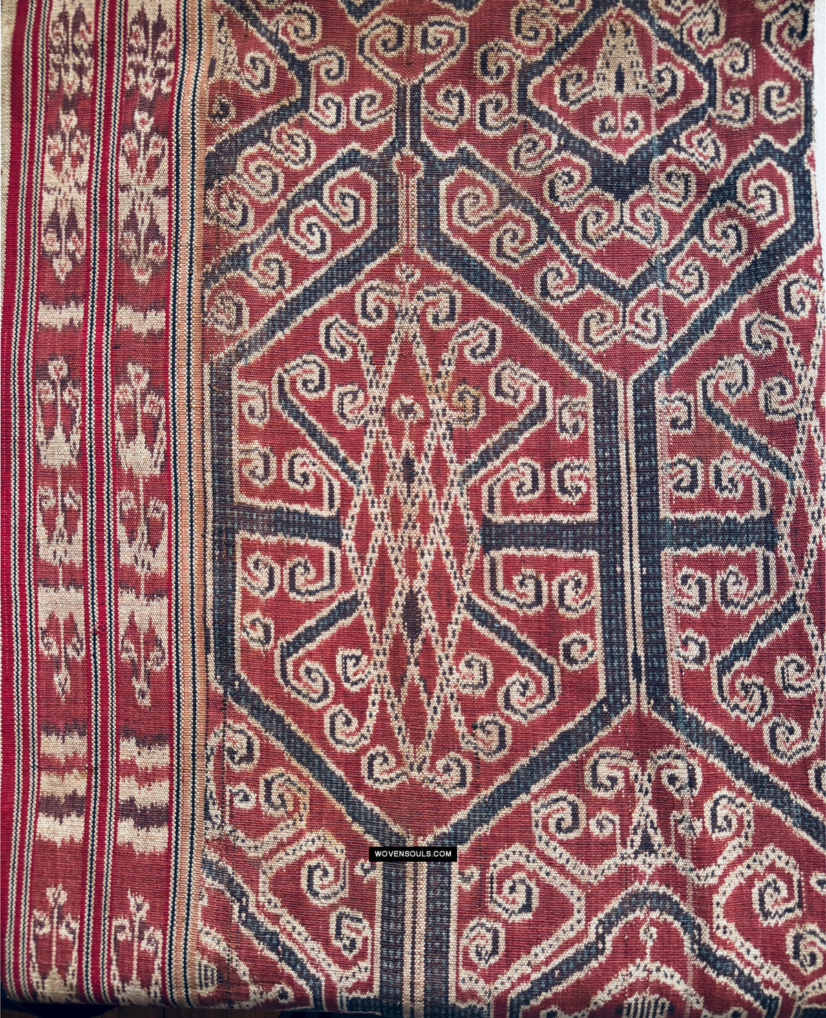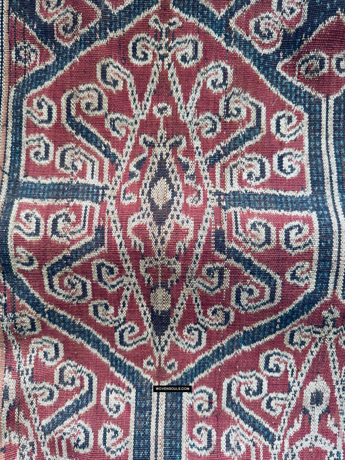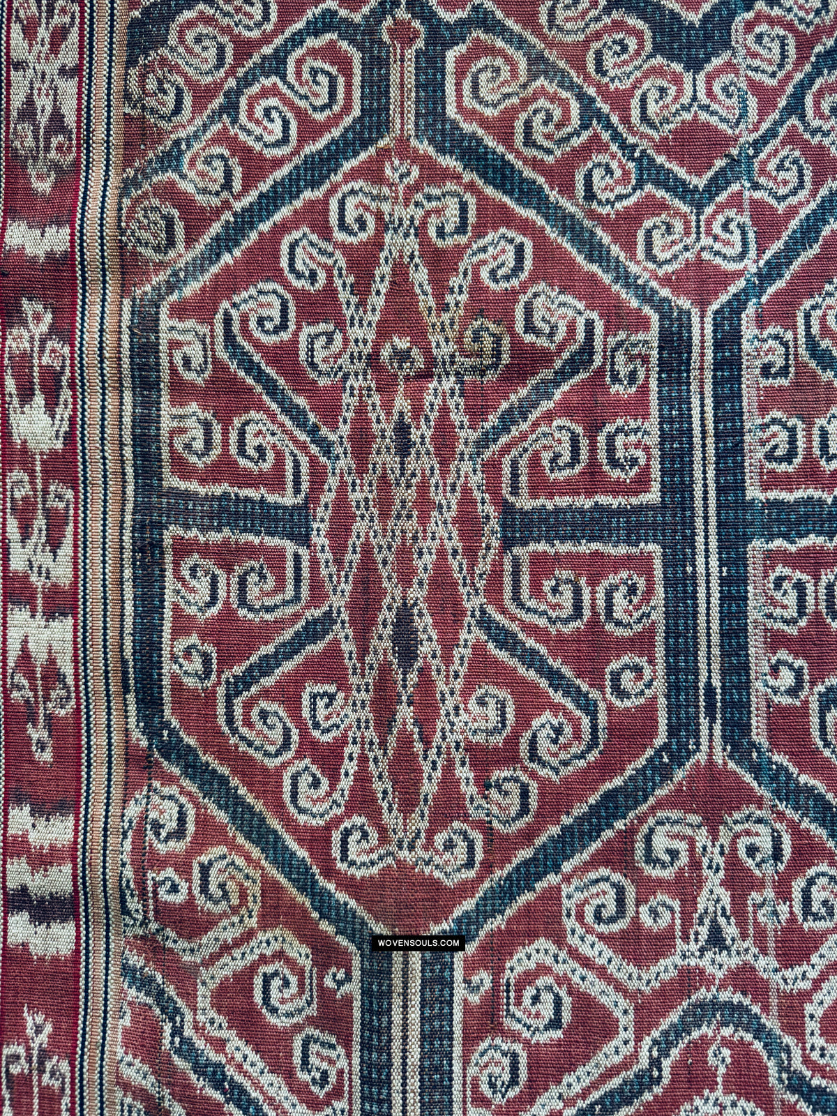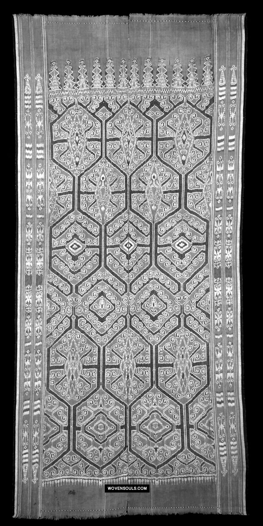 Antico iban cerimoniale ikat pua kumbu con una presenza fantastica