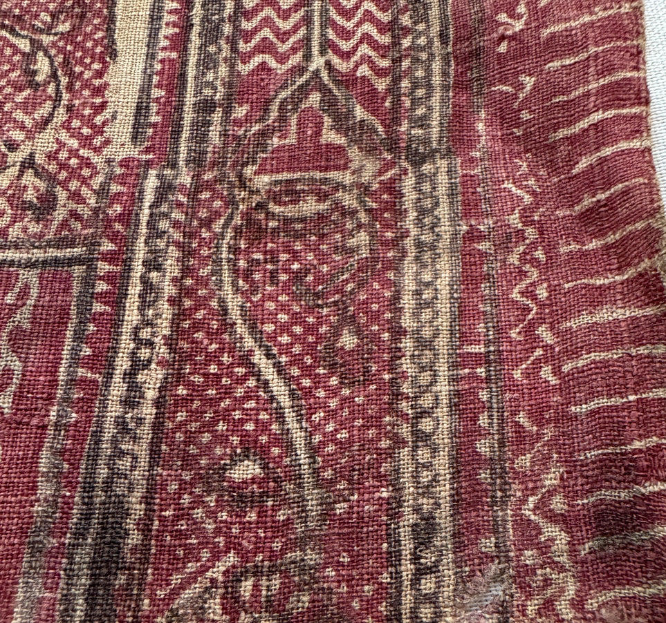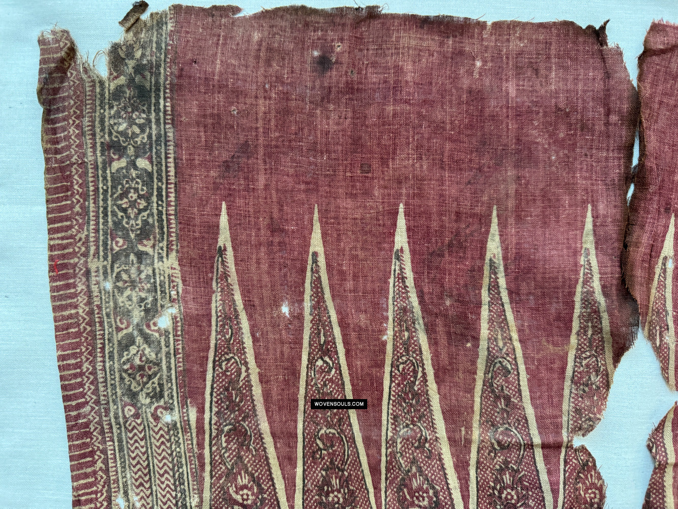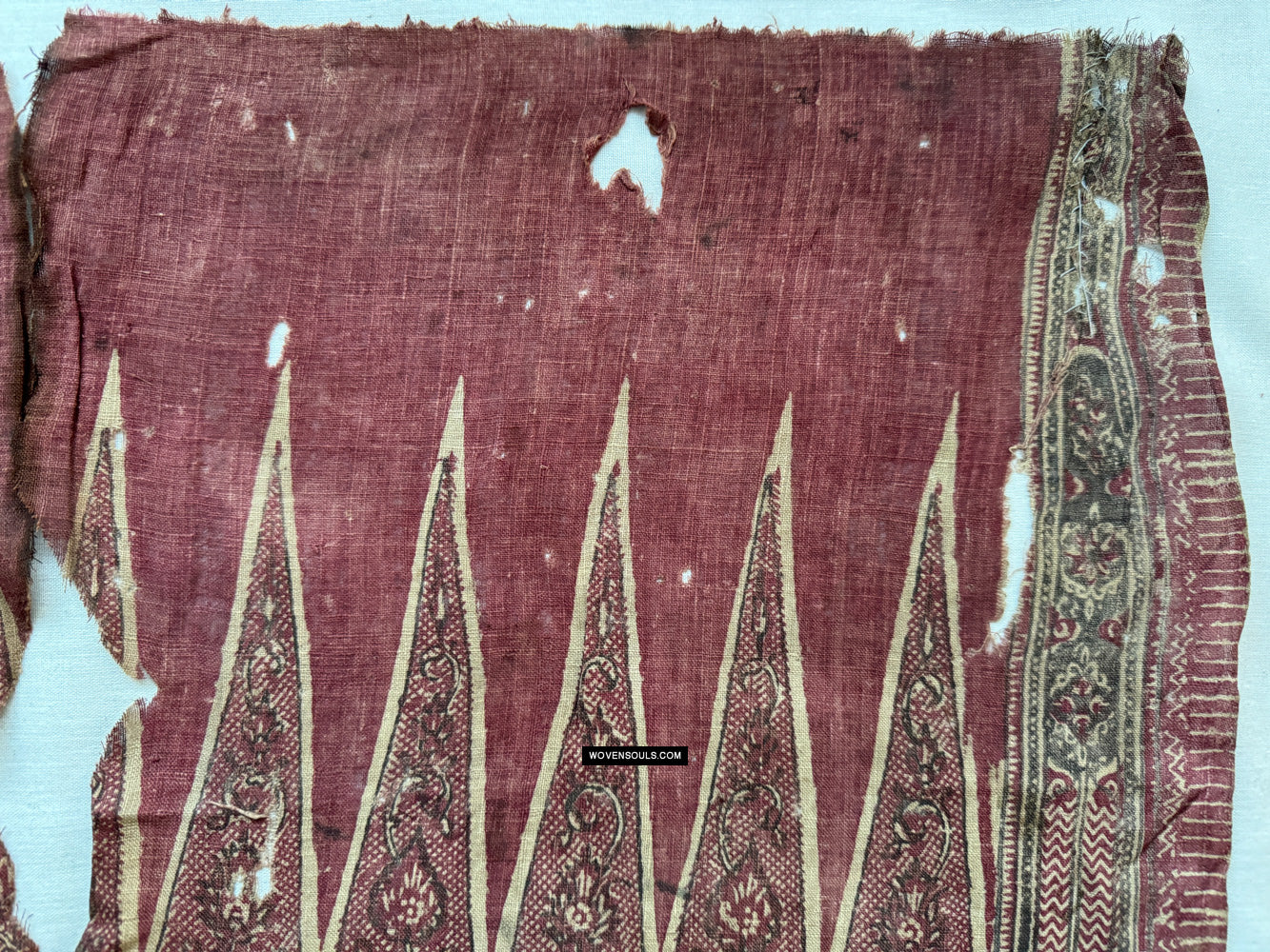 Squisita coppia di frammenti di bordo (pannello di palu o end) di un tessile commerciale indiano.