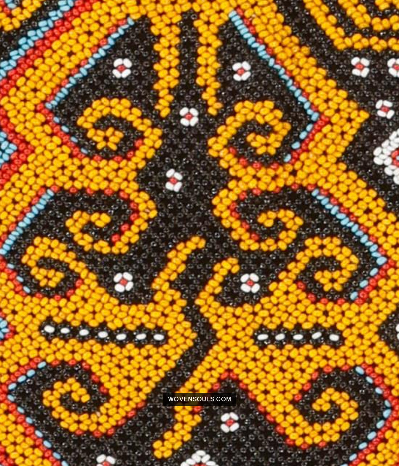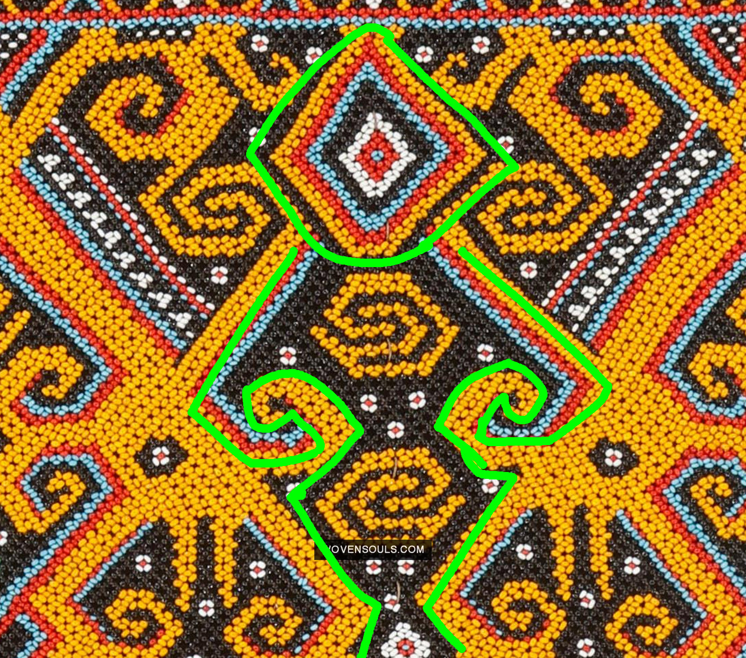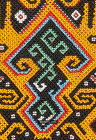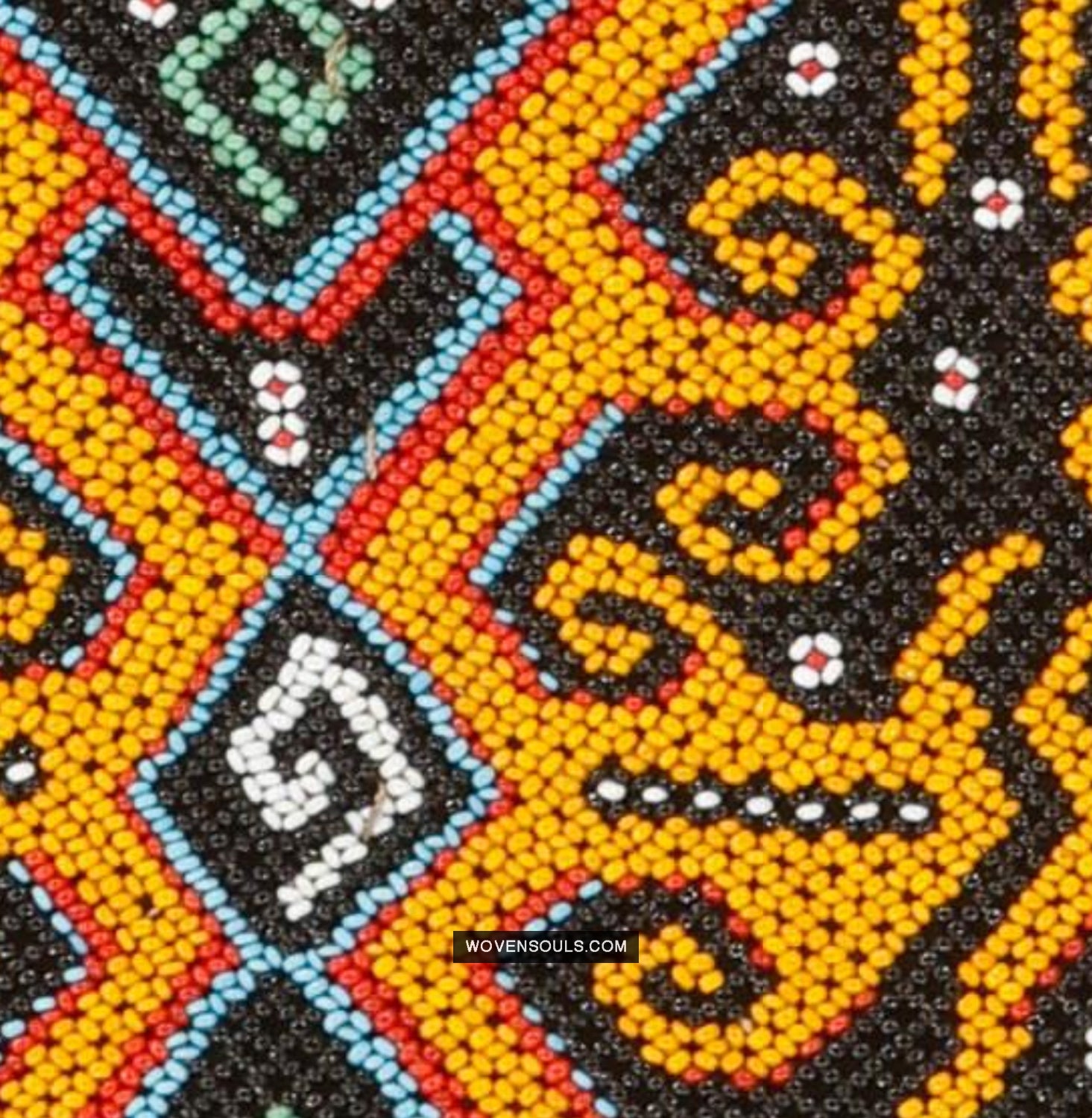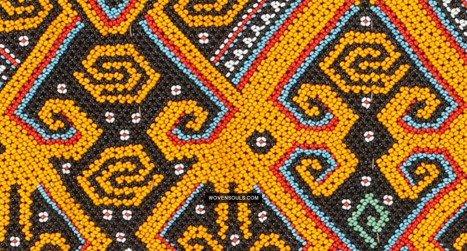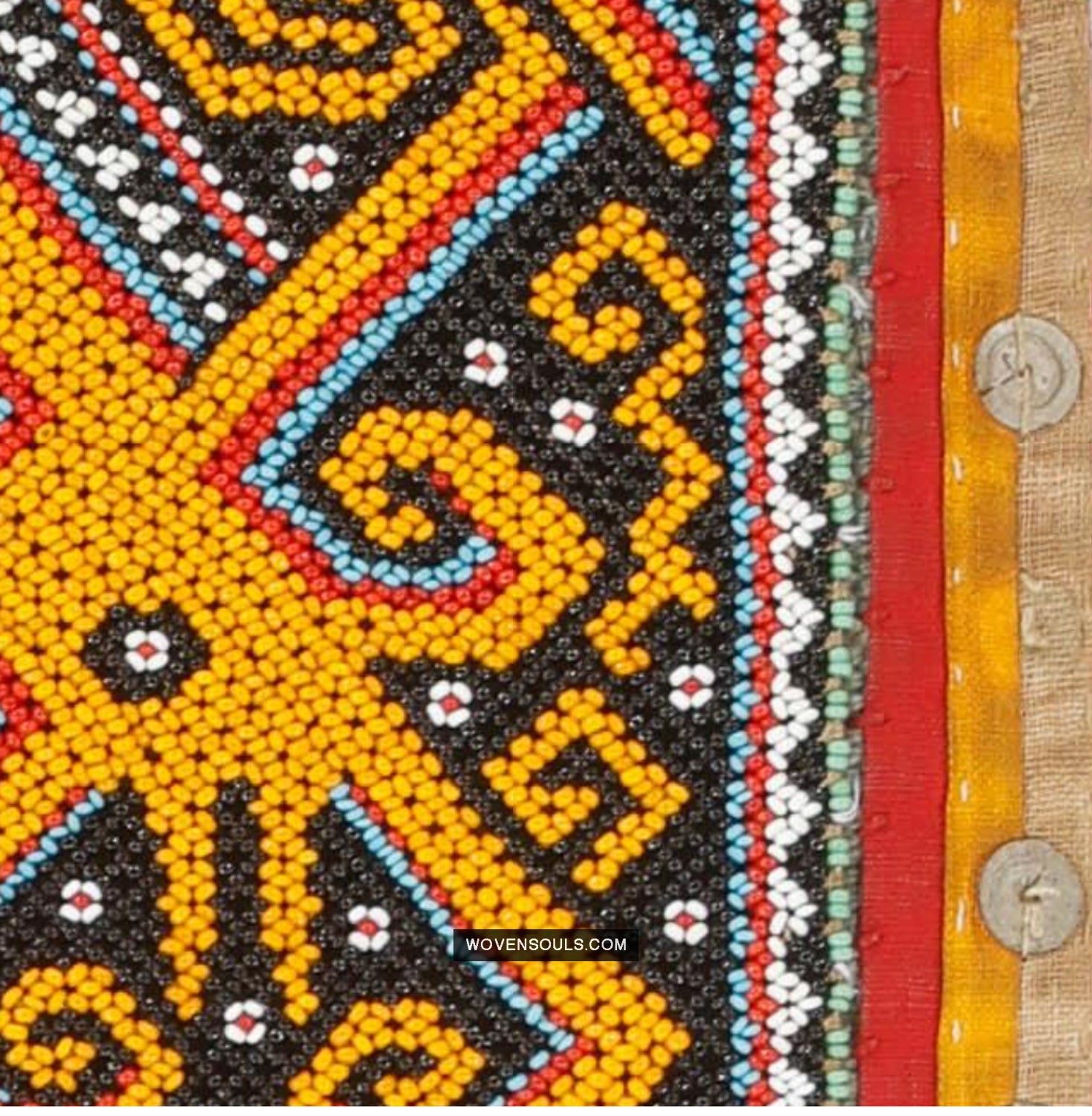 Maloh People, West Kalimantan, gonna di perline di Borneo - potente motivo spirituale. Perline, paillettes e conchiglie abbellimenti sul cotone commerciale. I Maloh indossavano gonne come questa in occasioni festive e cerimoniali: nascita, matrimonio, morte, raccolti e motivi di spirito forti come questo erano limitati a quelli nei vertici della società.
