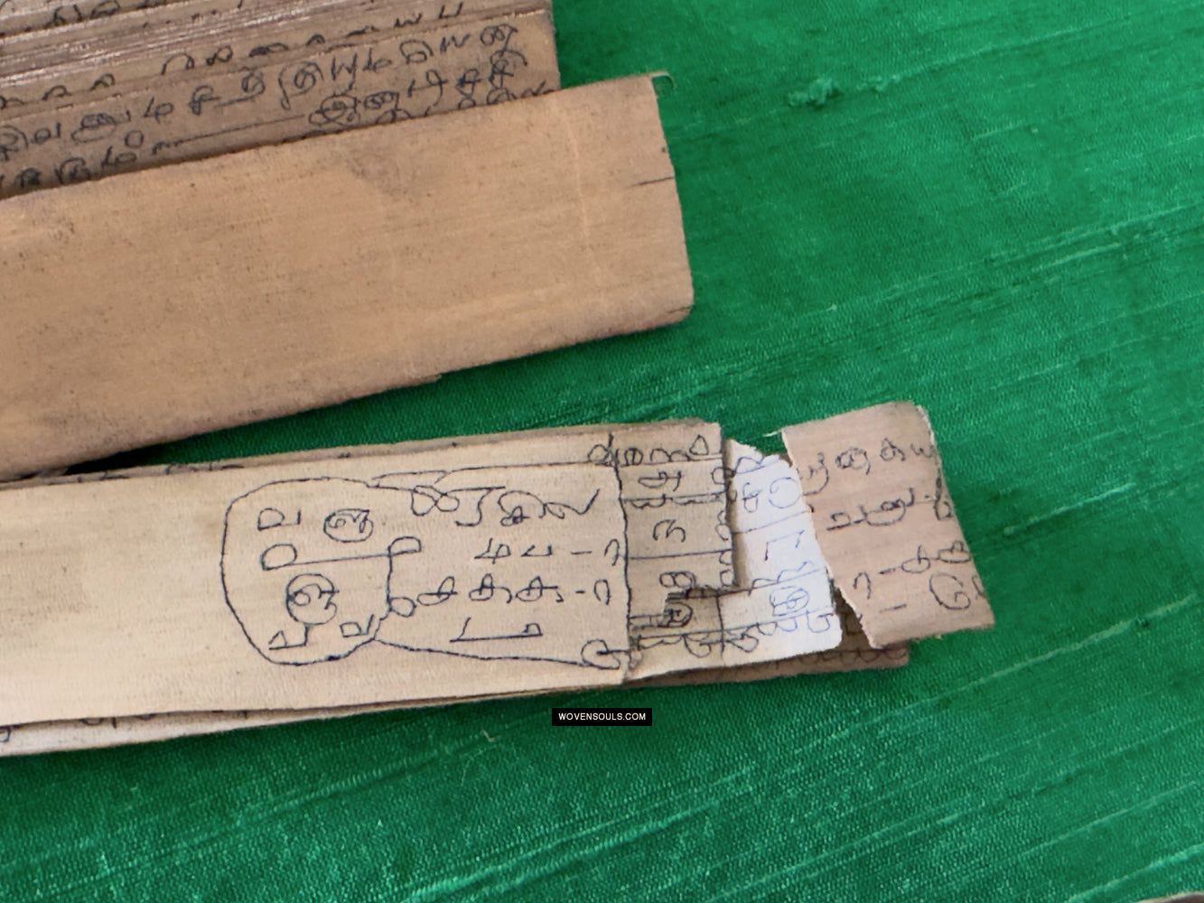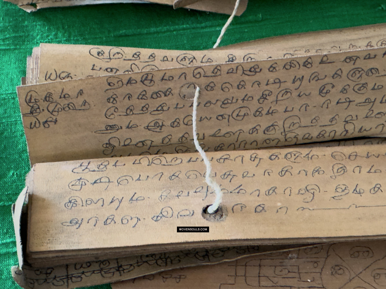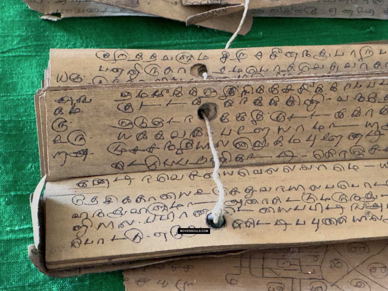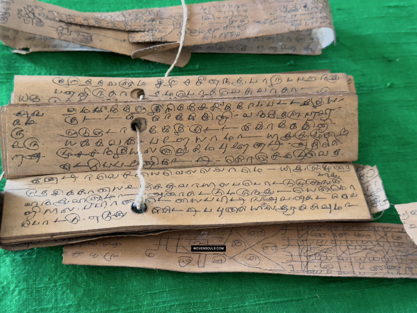 1868 Old Tamil Palm Leaf Manuscript con coperture laterali / Ceylon