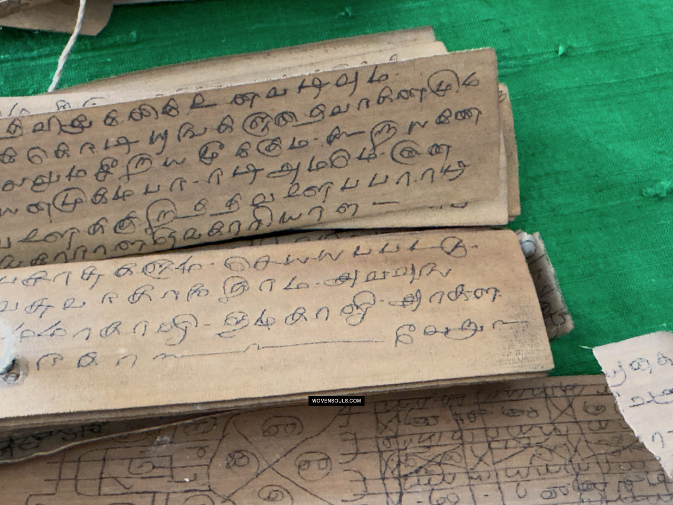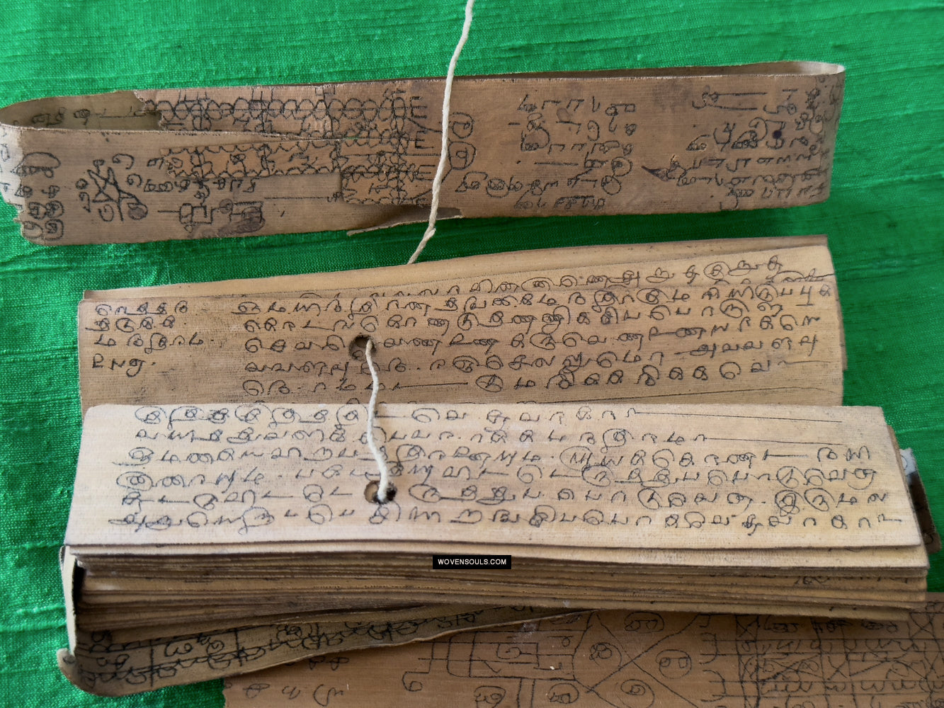 Questo manoscritto di foglie di palma contiene iscrizioni in quello che sembra essere tamil.