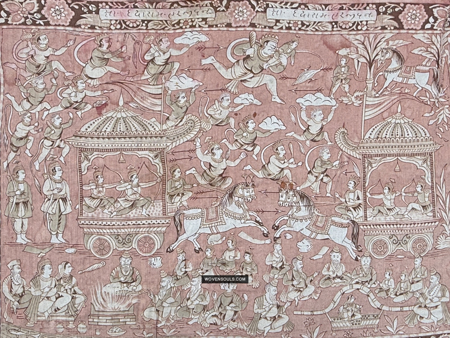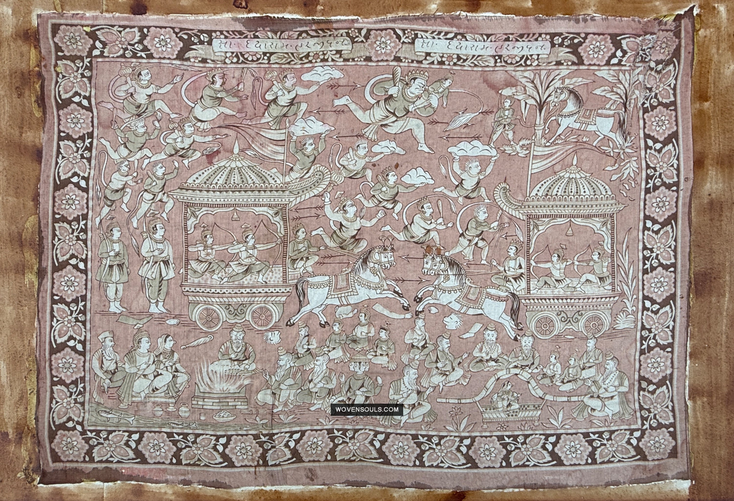 2009 Antique Ramayan Hindu Art con Lord Ram, Sita, Laxman, Hanuman