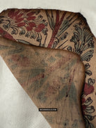 Un antico frammento irregolare in gialla rettangolare di un tessile commerciale indiano.