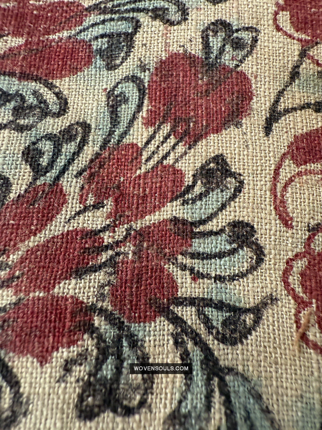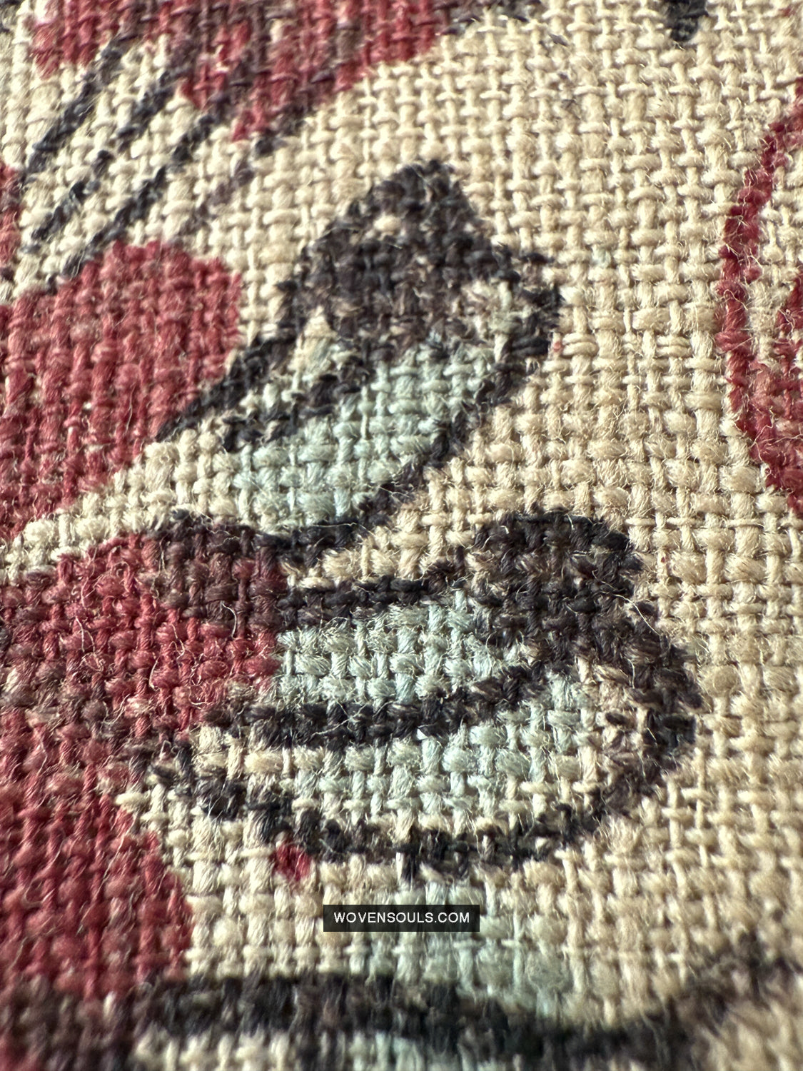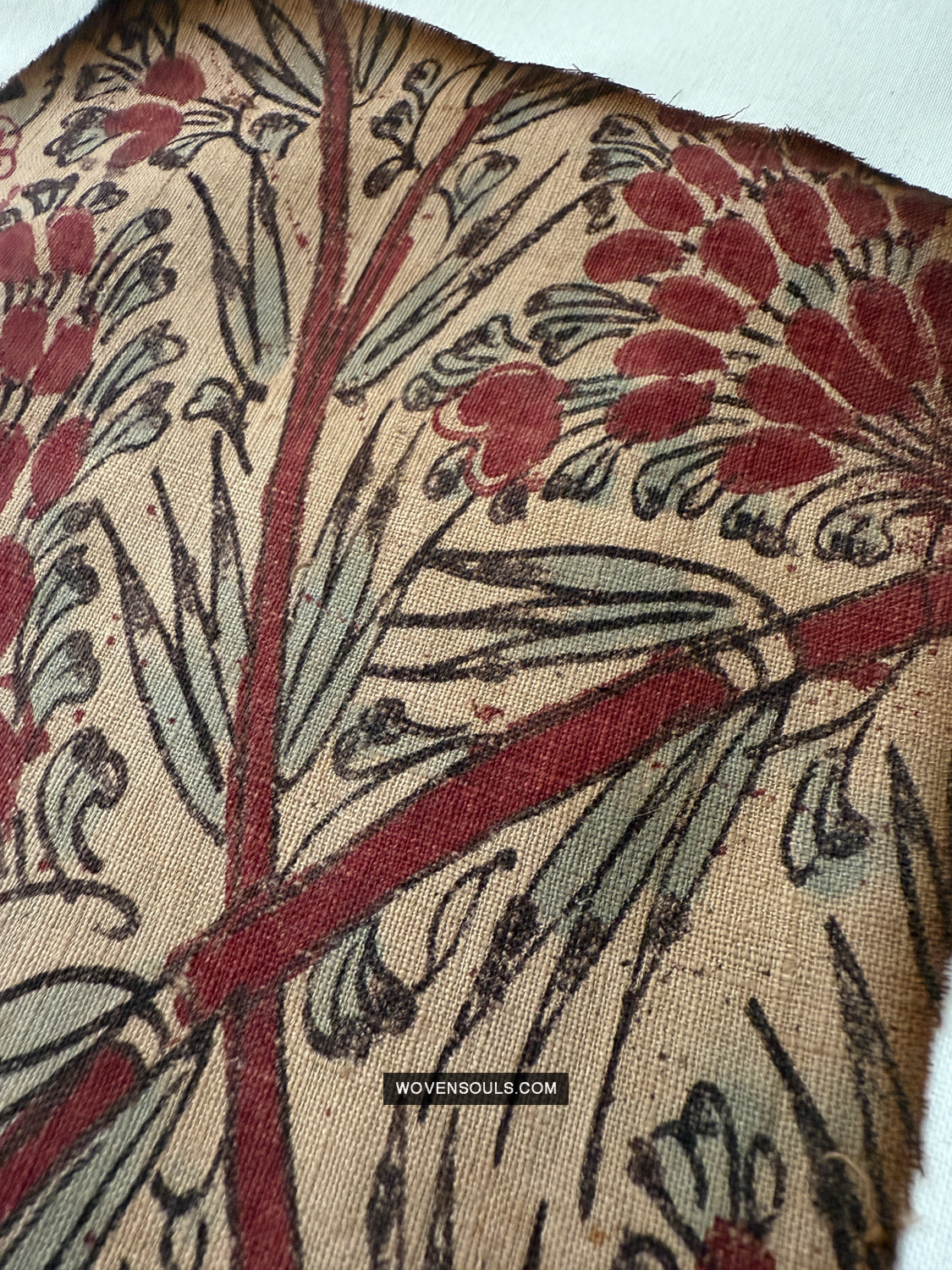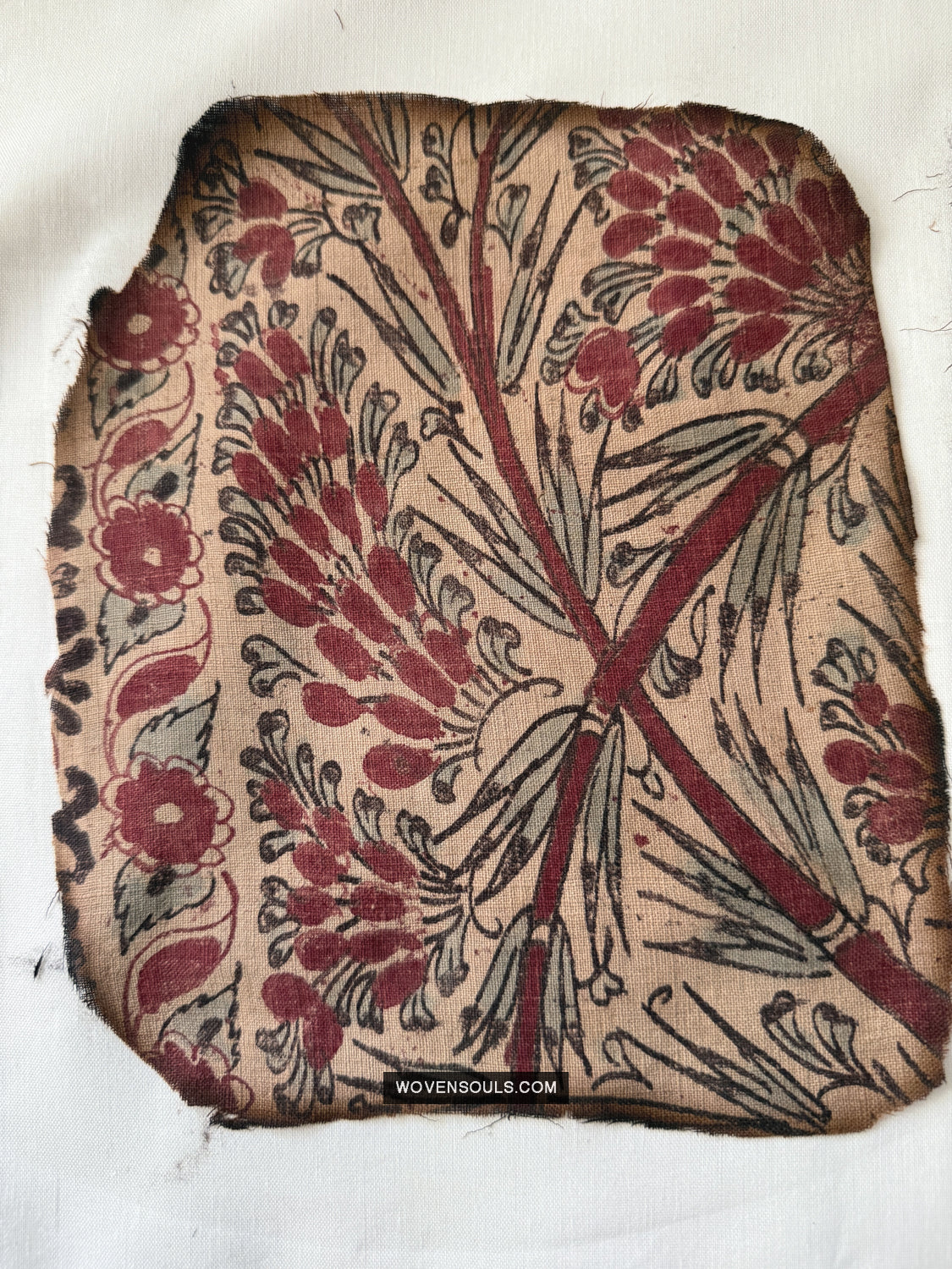 Questo frammento è stato salvato da un incendio, quindi ha segni di ustioni presenti. Buchi e macchie. I bordi nemmeno. Questo frammento è una delle numerose sezioni che sono state salvate dalla stessa stoffa colpita dal fuoco.