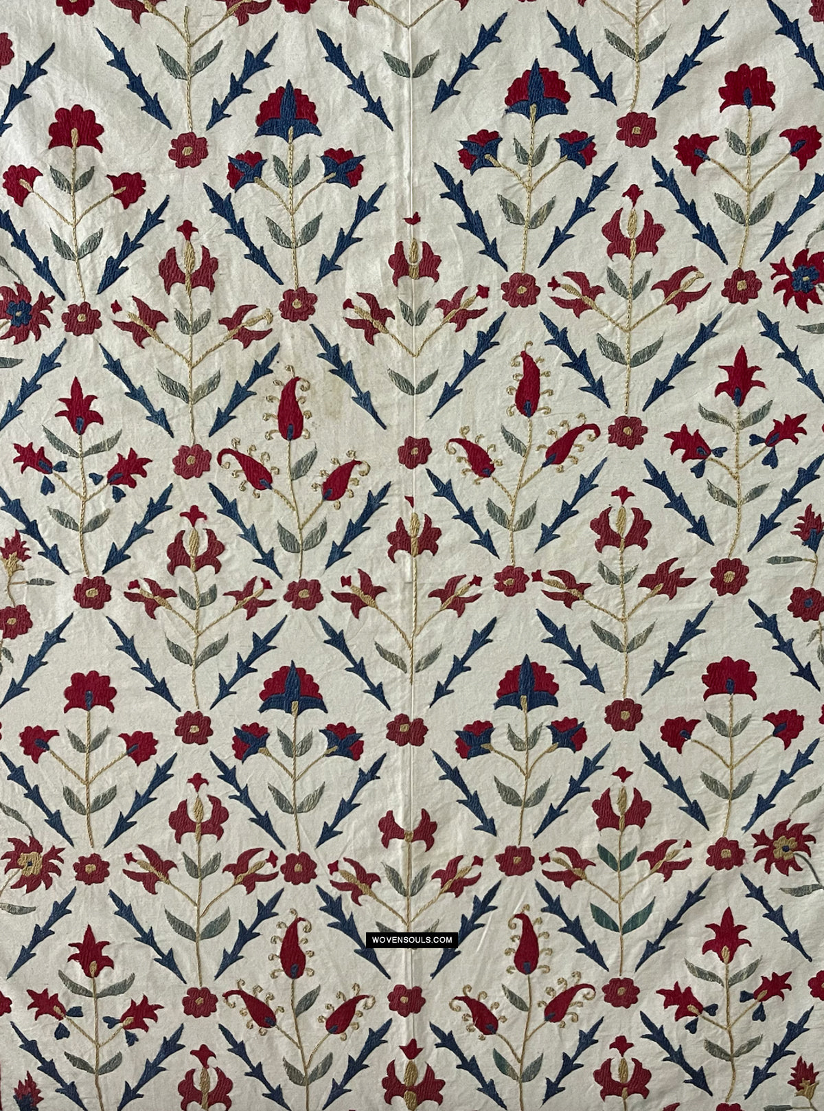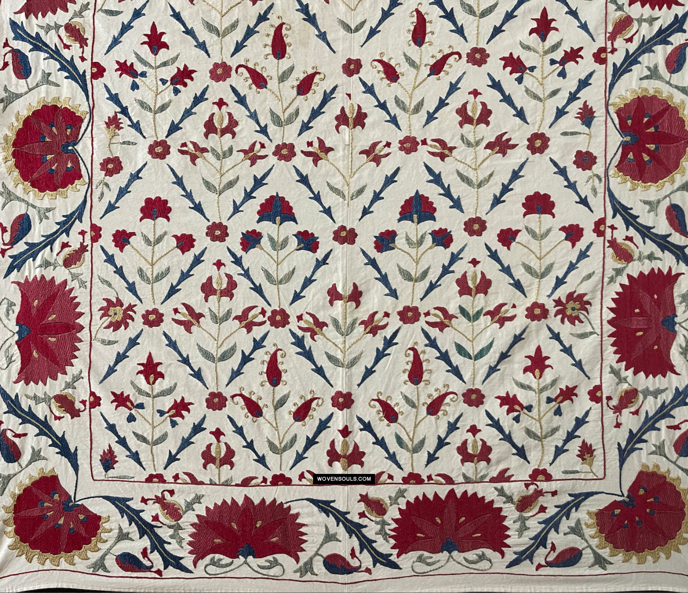 Nim Suzani dell'Asia centrale, ricamo di seta su una fondazione di cotone.