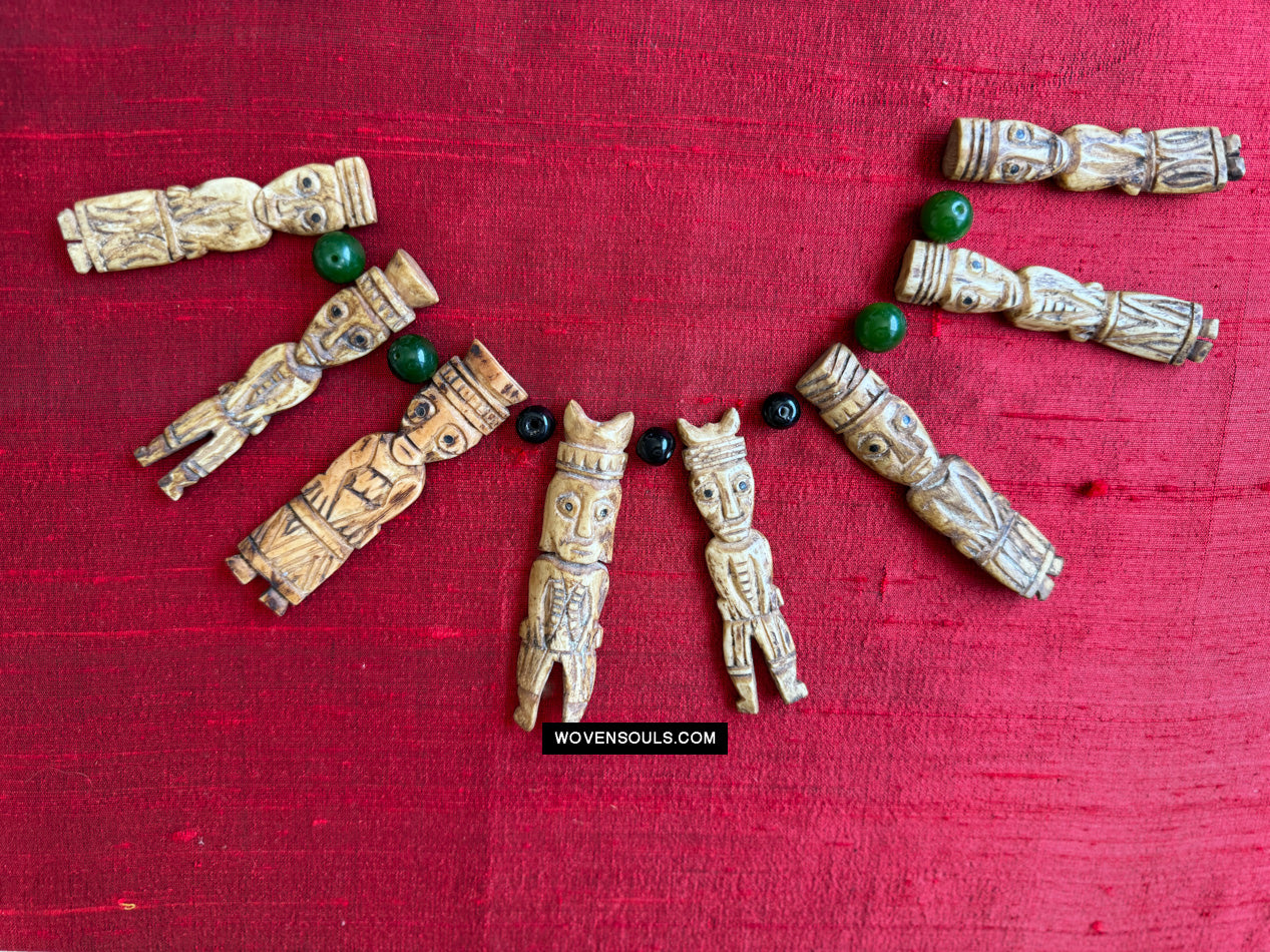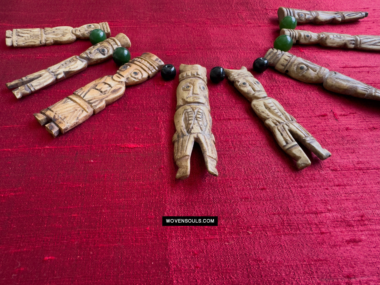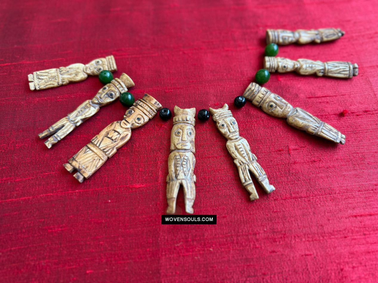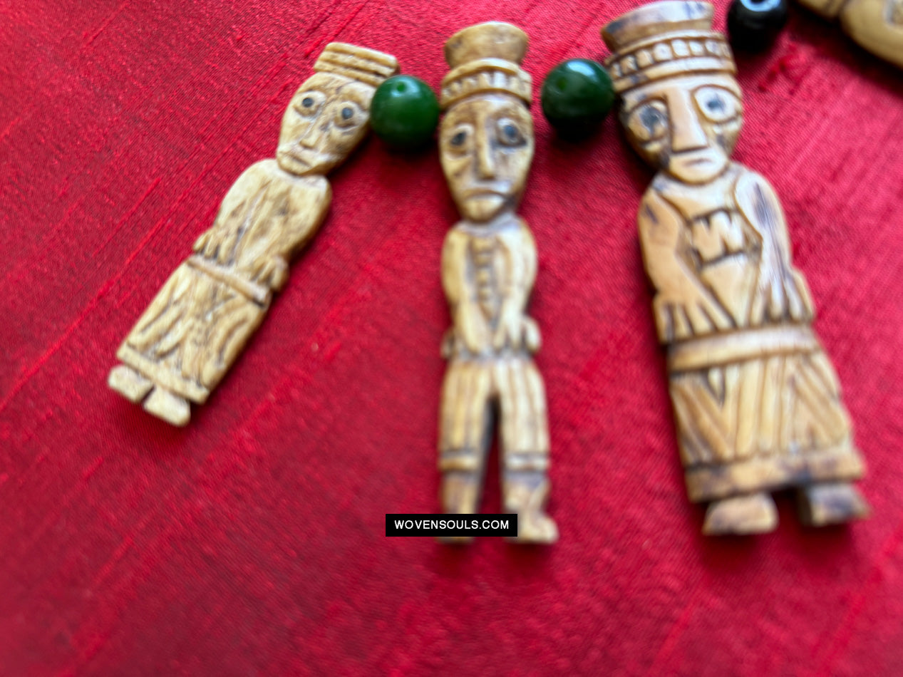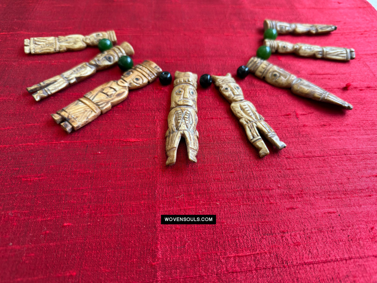 Eight beautiful handcrafted bone figures. Could be worn as a necklace.