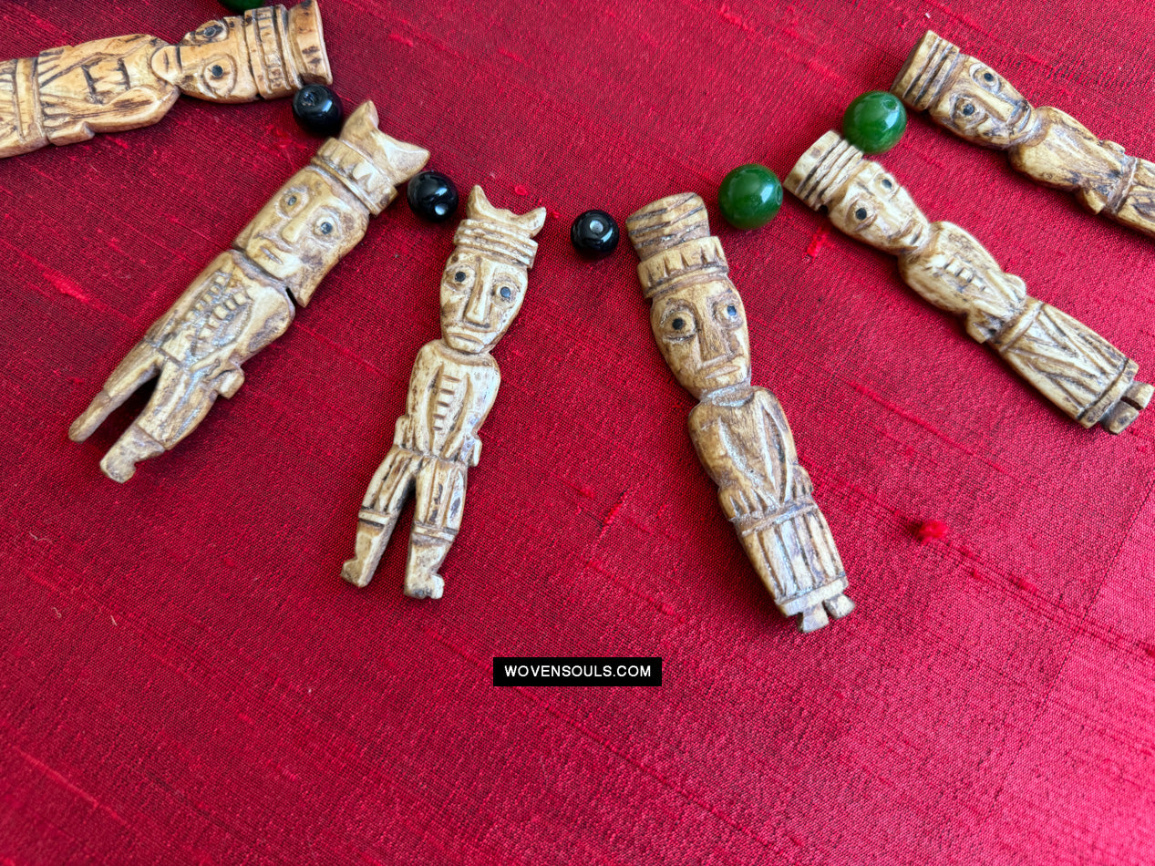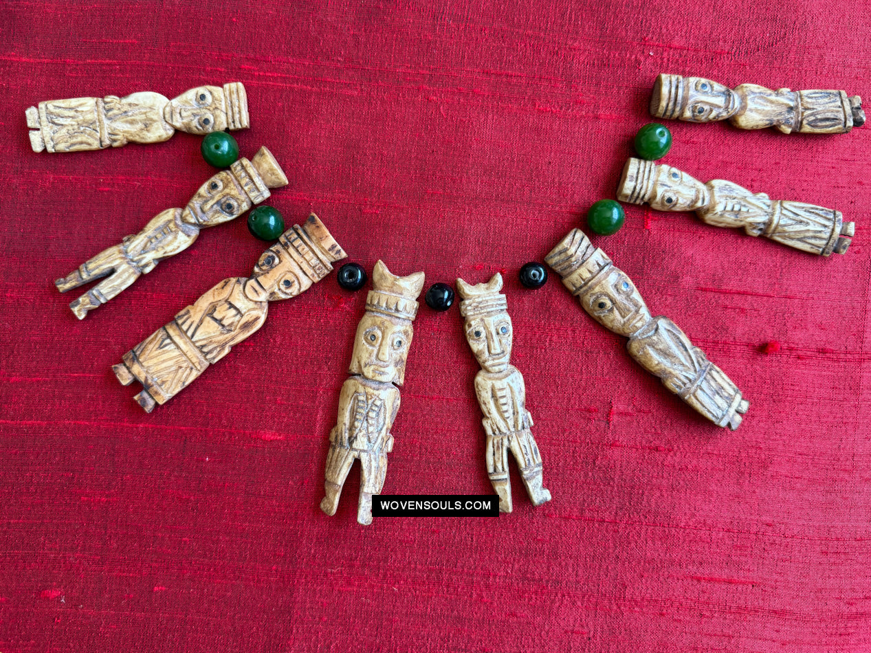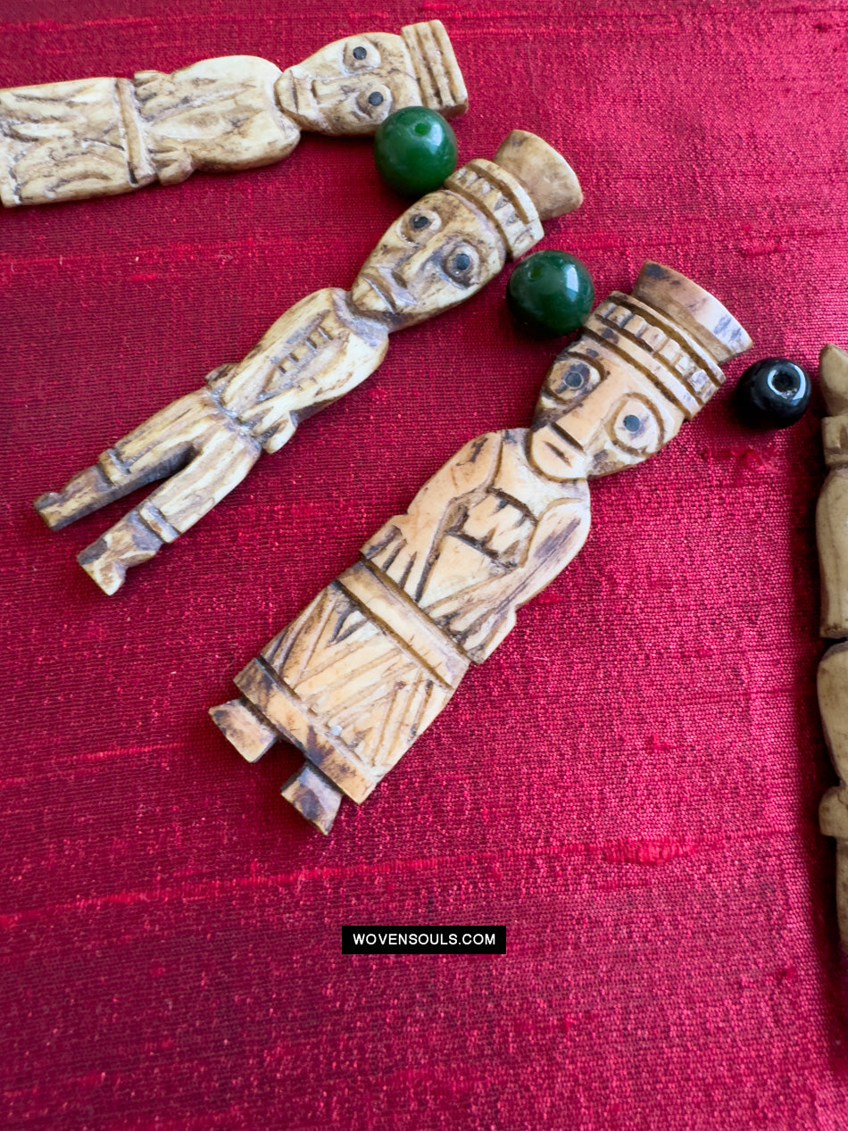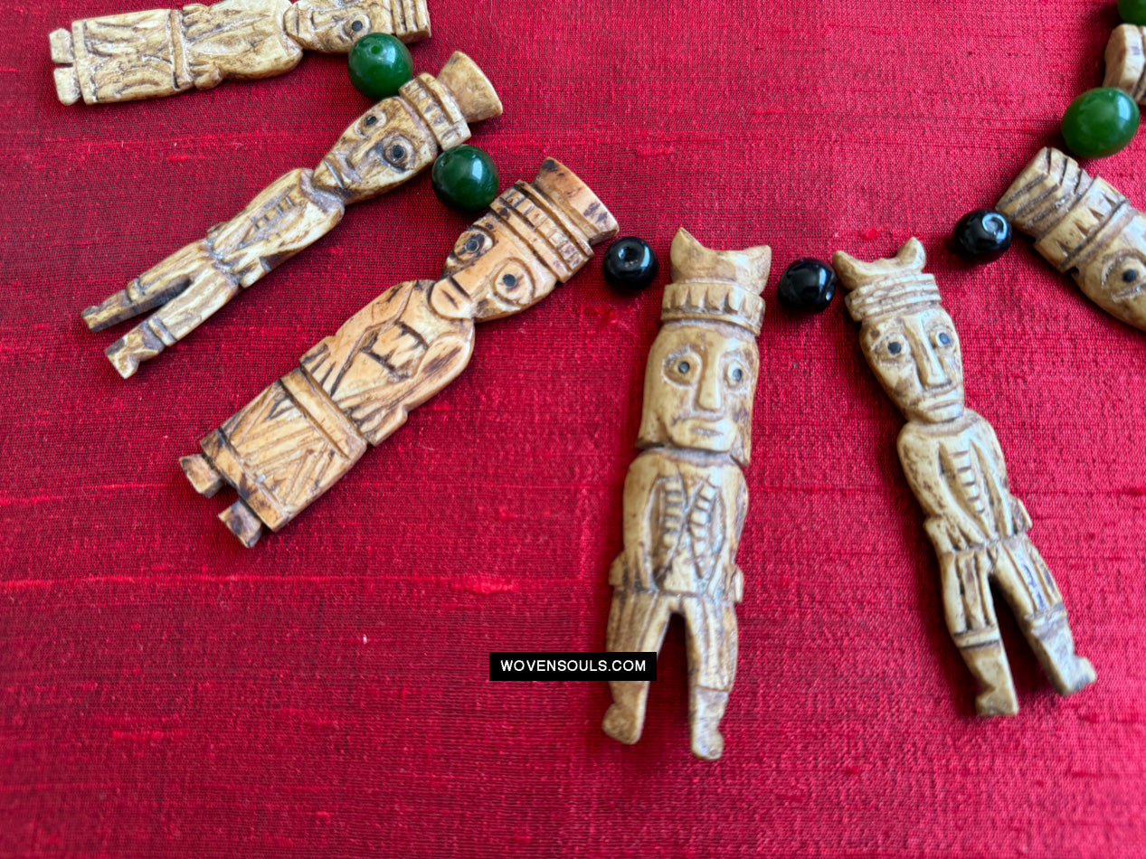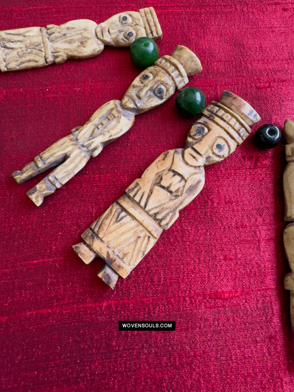 Eight beautiful handcrafted bone figures. Could be worn as a necklace.