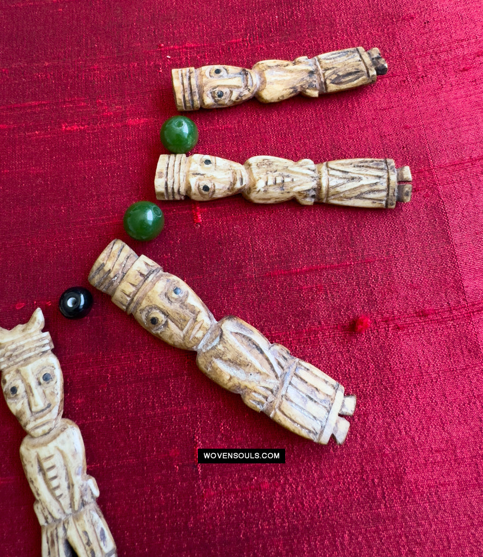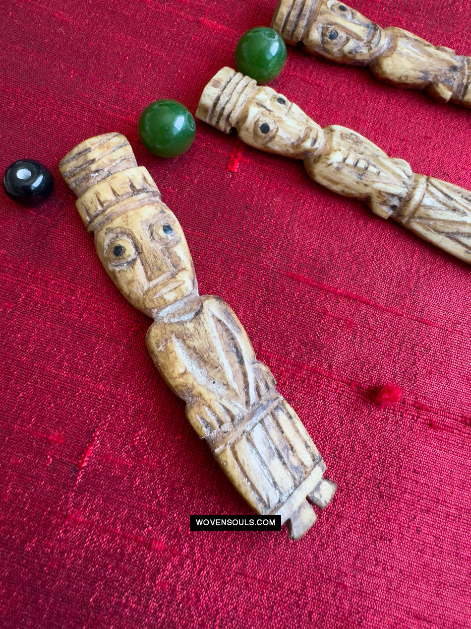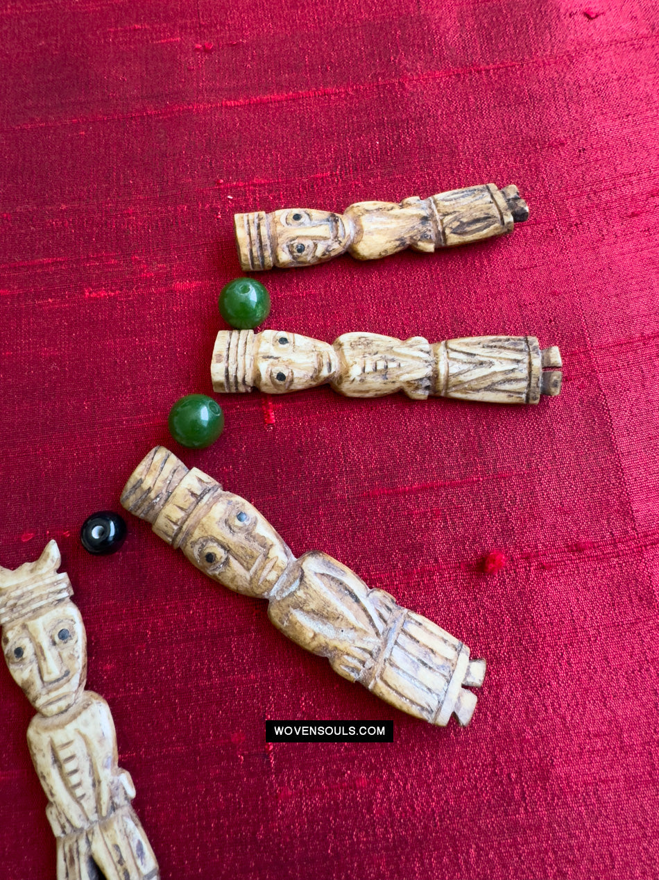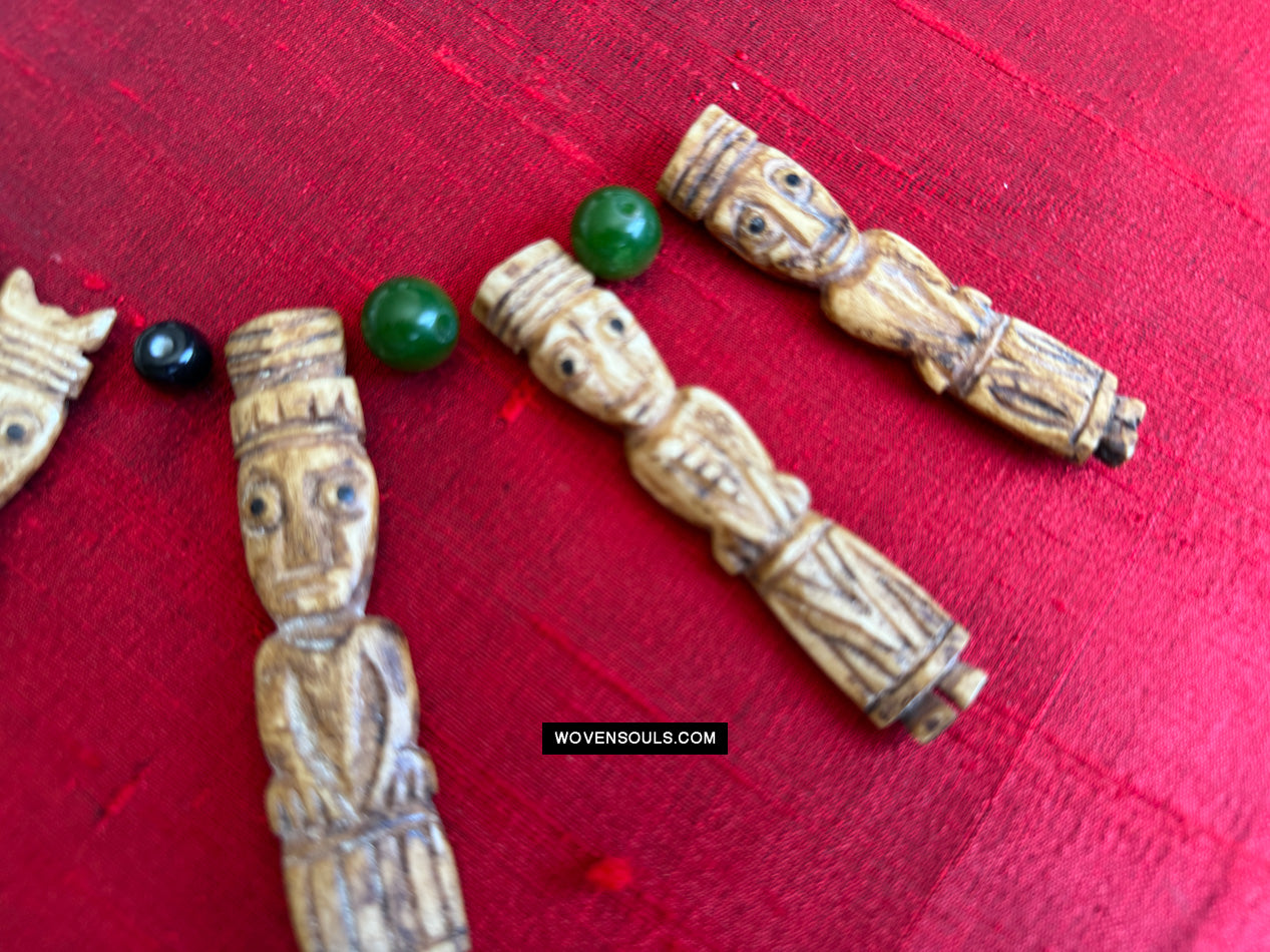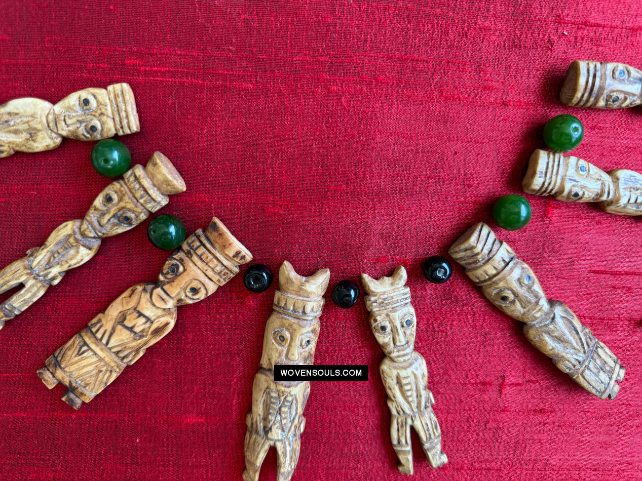 Eight beautiful handcrafted bone figures. Could be worn as a necklace.