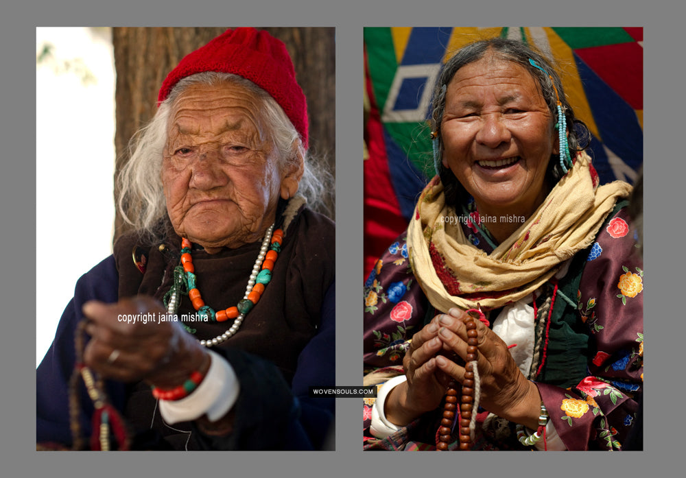 In Tibet and the Himalayan belt, people everywhere either have a prayer wheel or prayer beads in their hands. The constant chanting of Buddha's names or mantras as one counts the beads is meditative and keeps one away from thinking negative thoughts