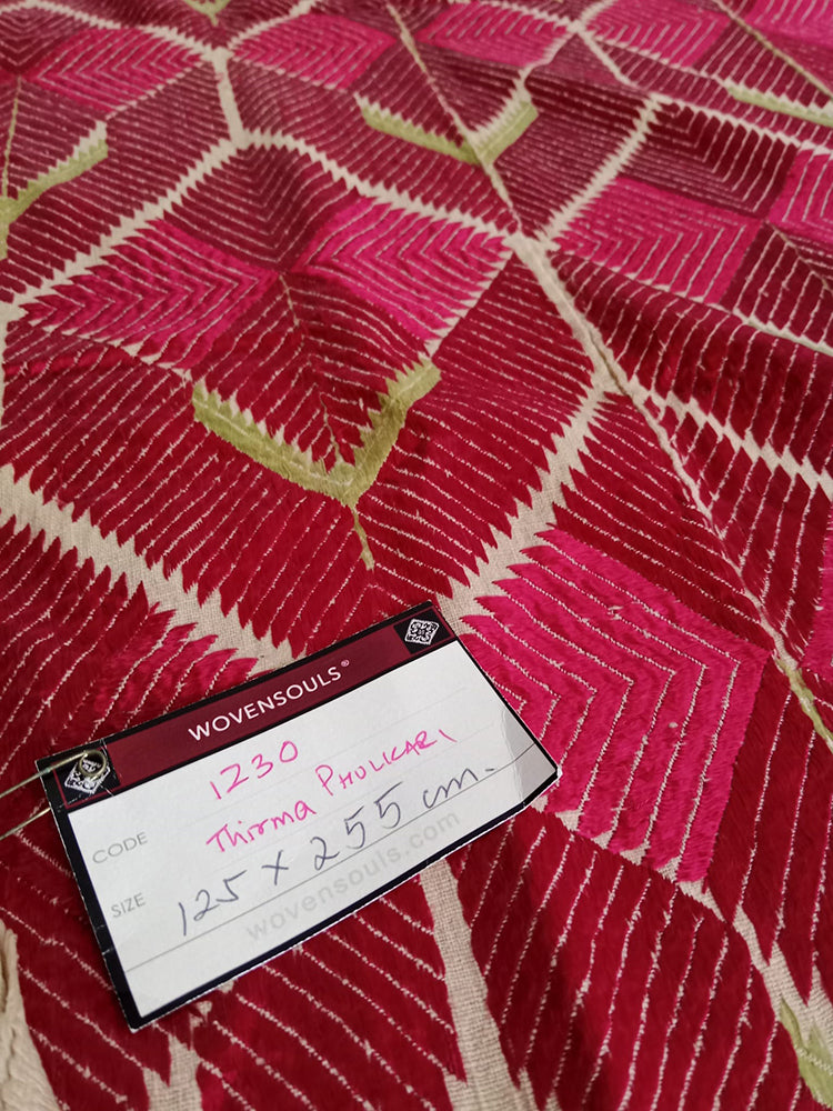 Superb Antique Thirma Bagh Phulkari Red & White with rose motif