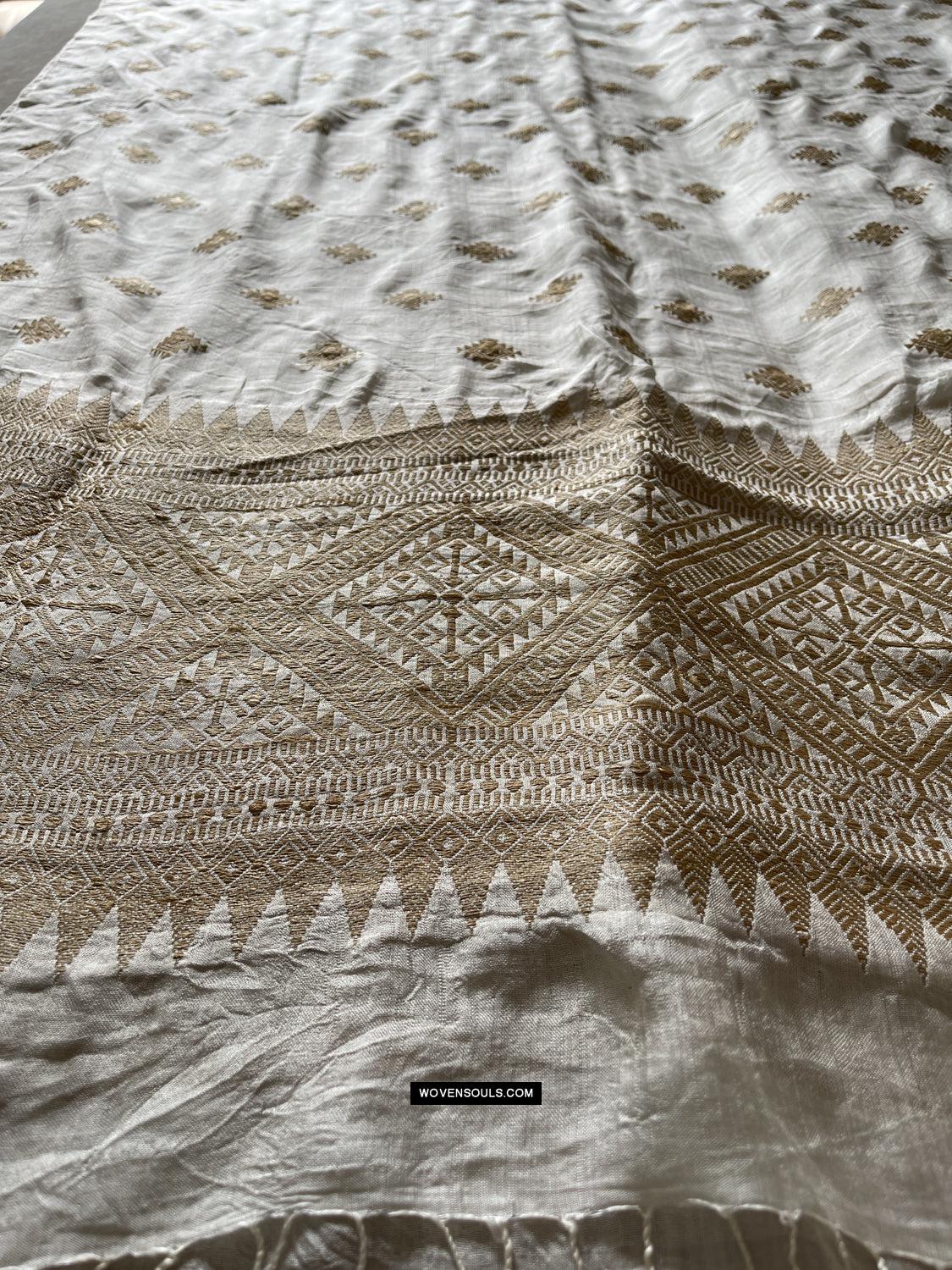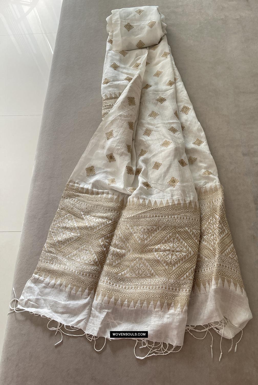 Handwoven Silk Assamese Scarf - White + Gold - Recently Made
